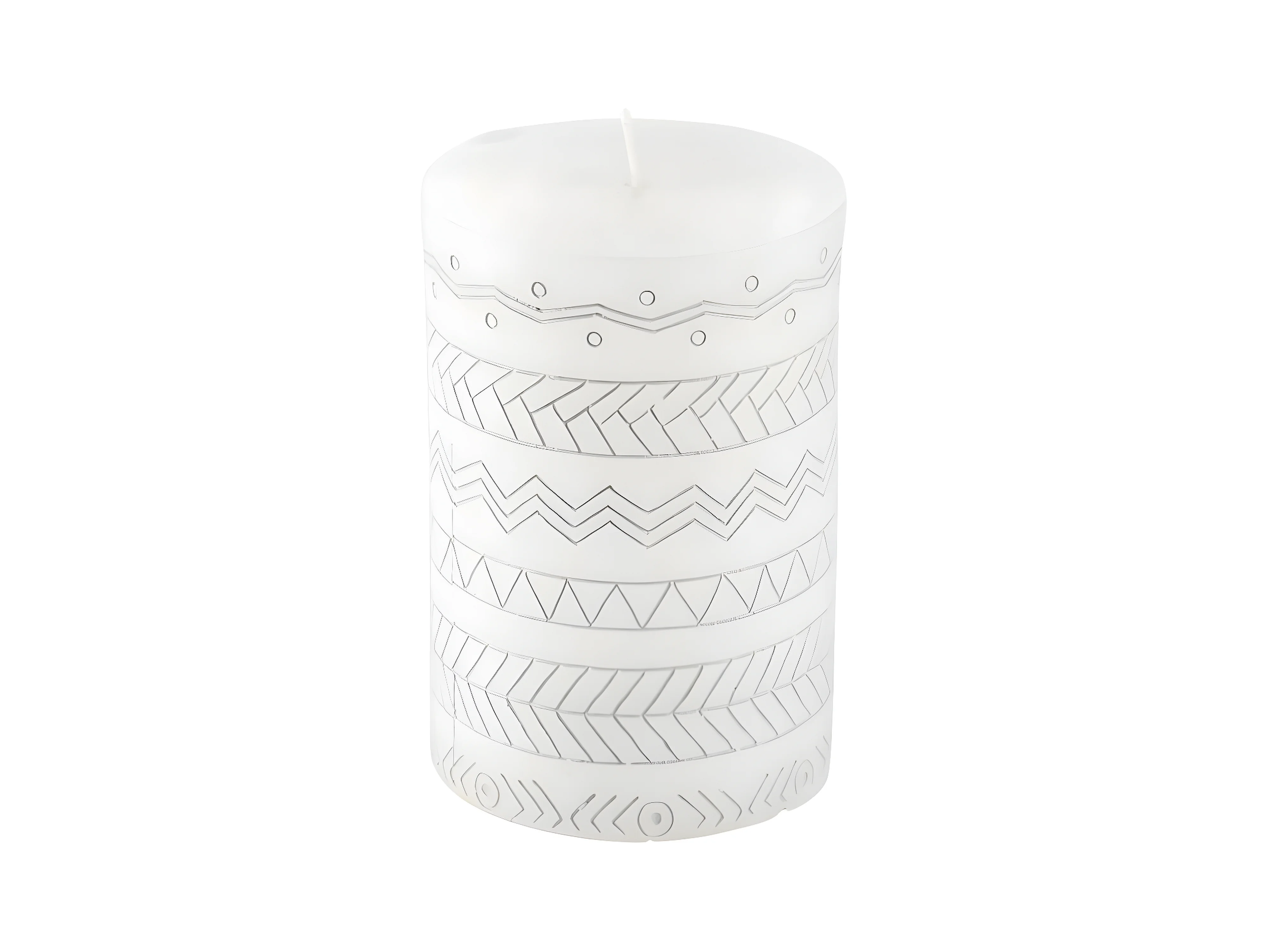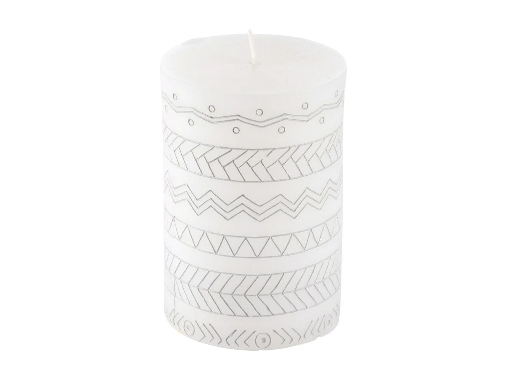 Bougie Pilier Embossée "Graphic Ethnic" 10cm Blanc