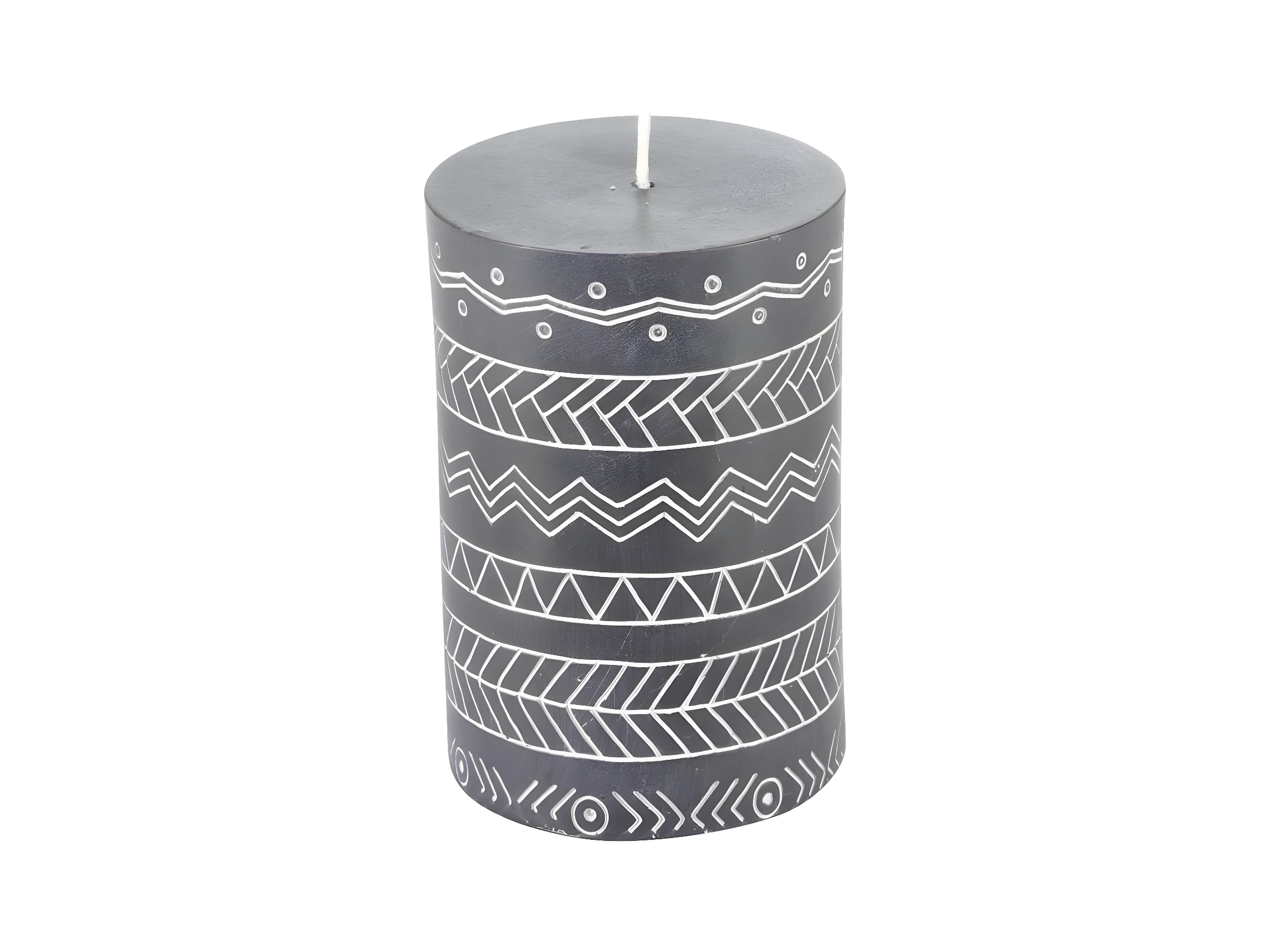 Bougie Pilier Embossée "Graphic Ethnic" 10cm Noir