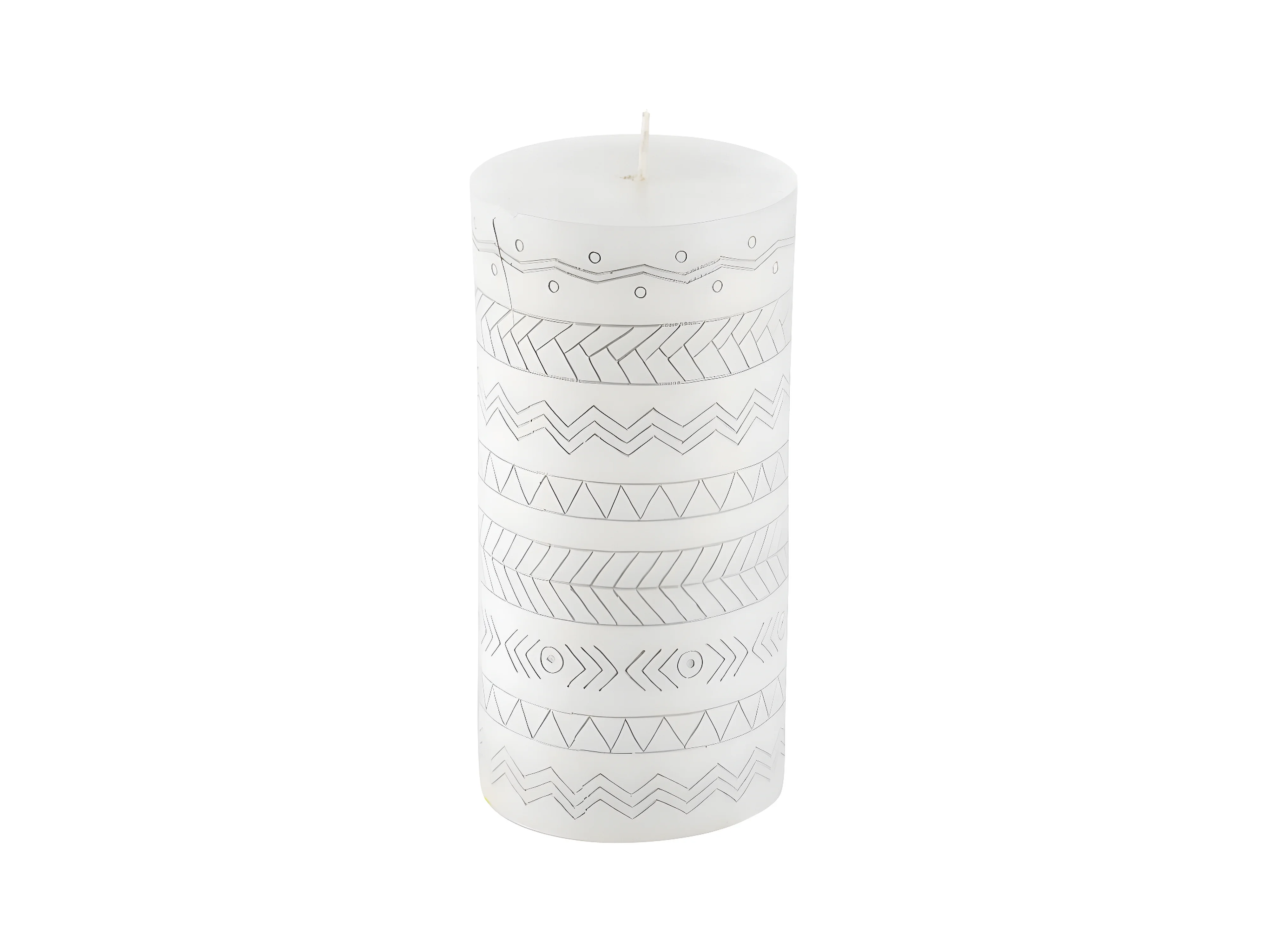 Bougie Pilier Embossée "Graphic Ethnic" 10cm Blanc