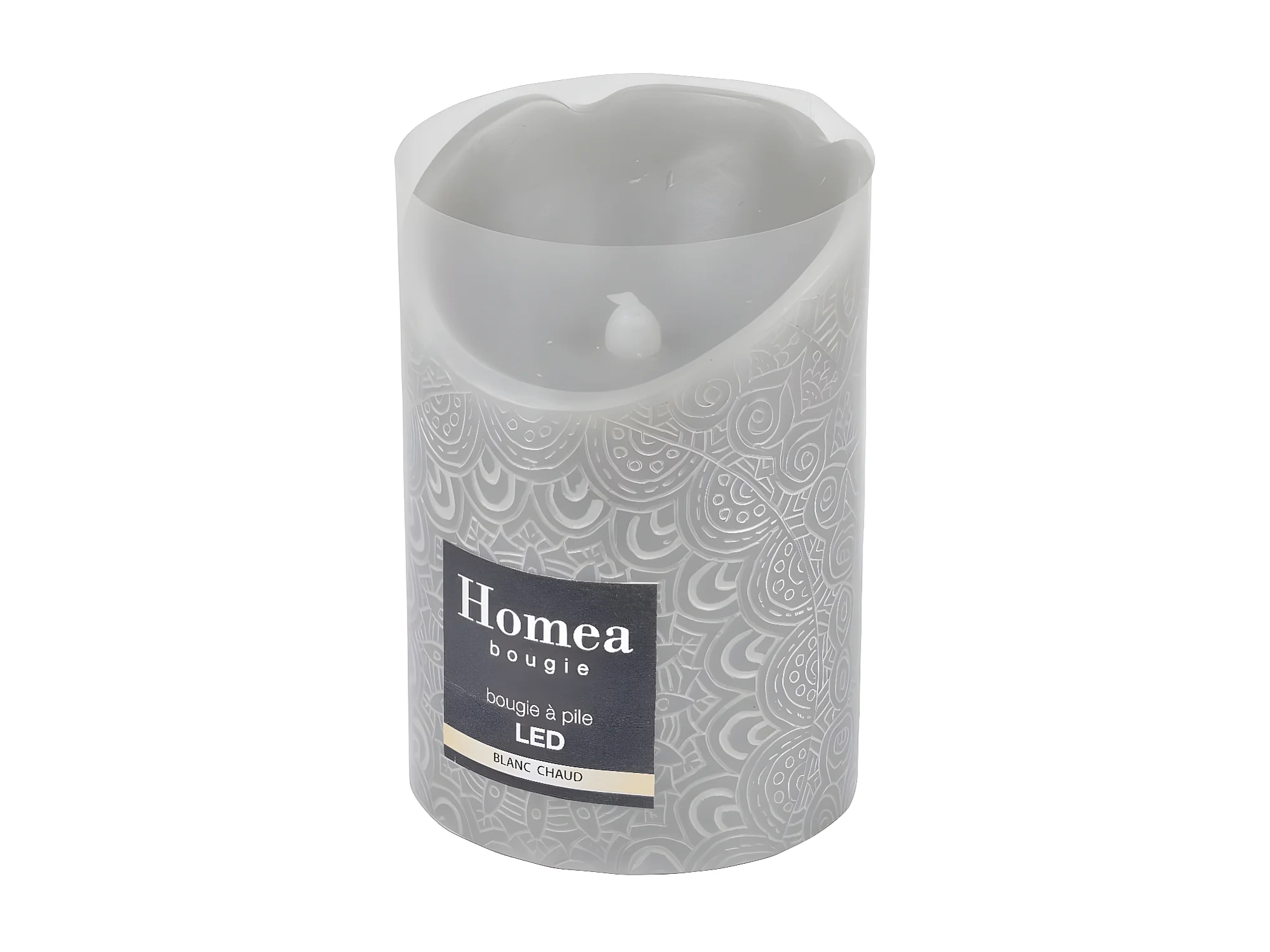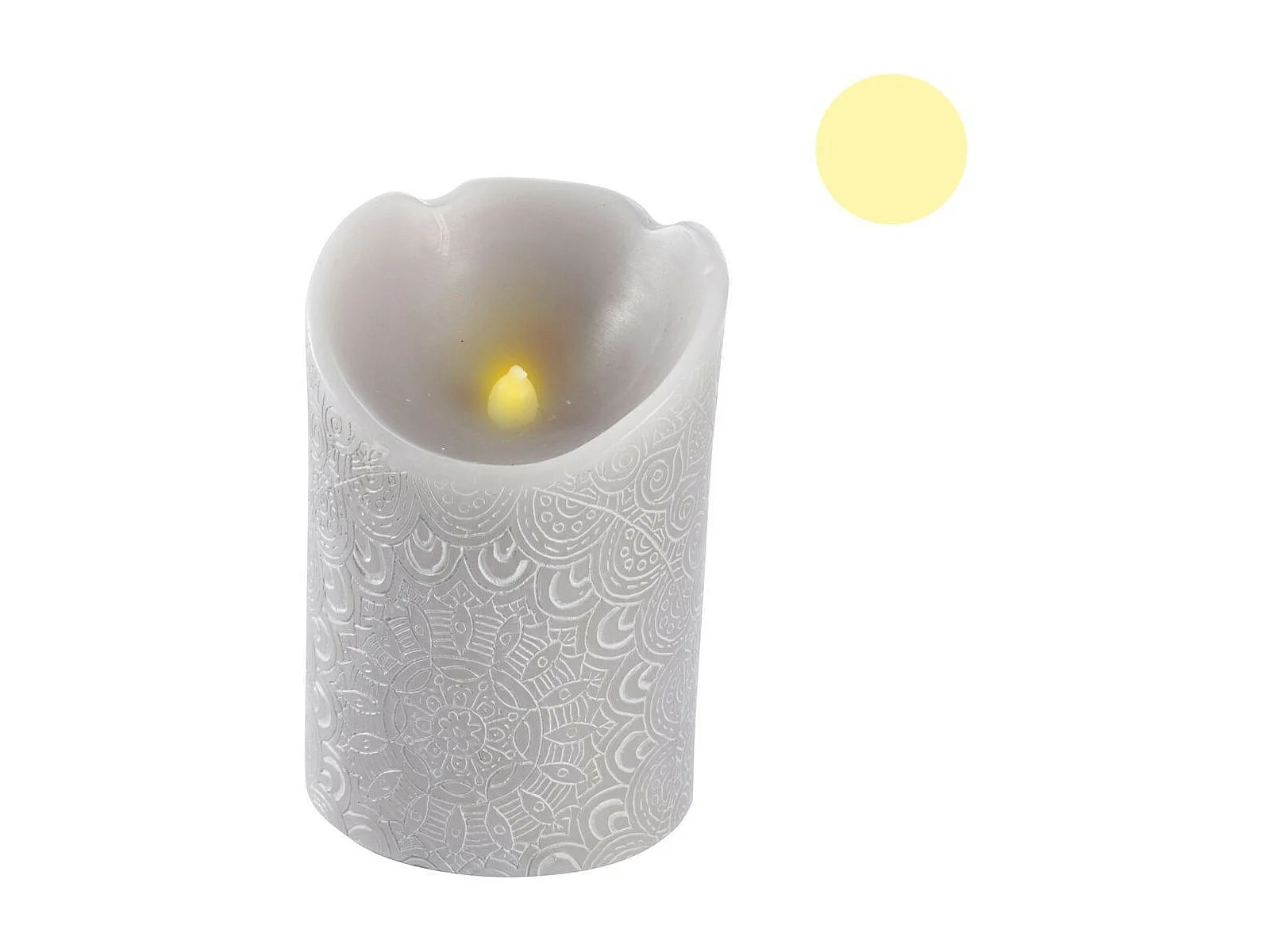 Bougie Pilier LED "Mandala" 11cm Gris Clair