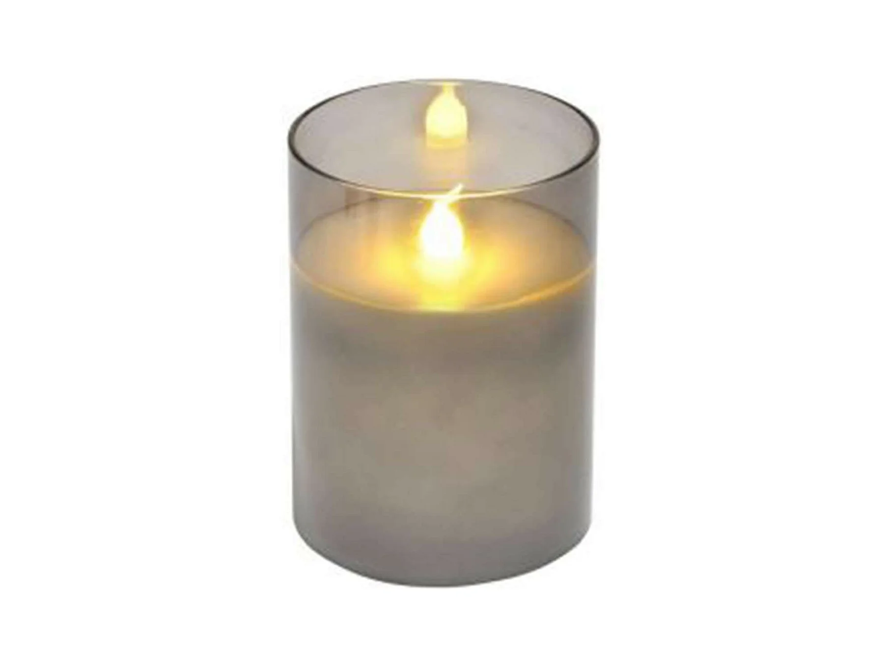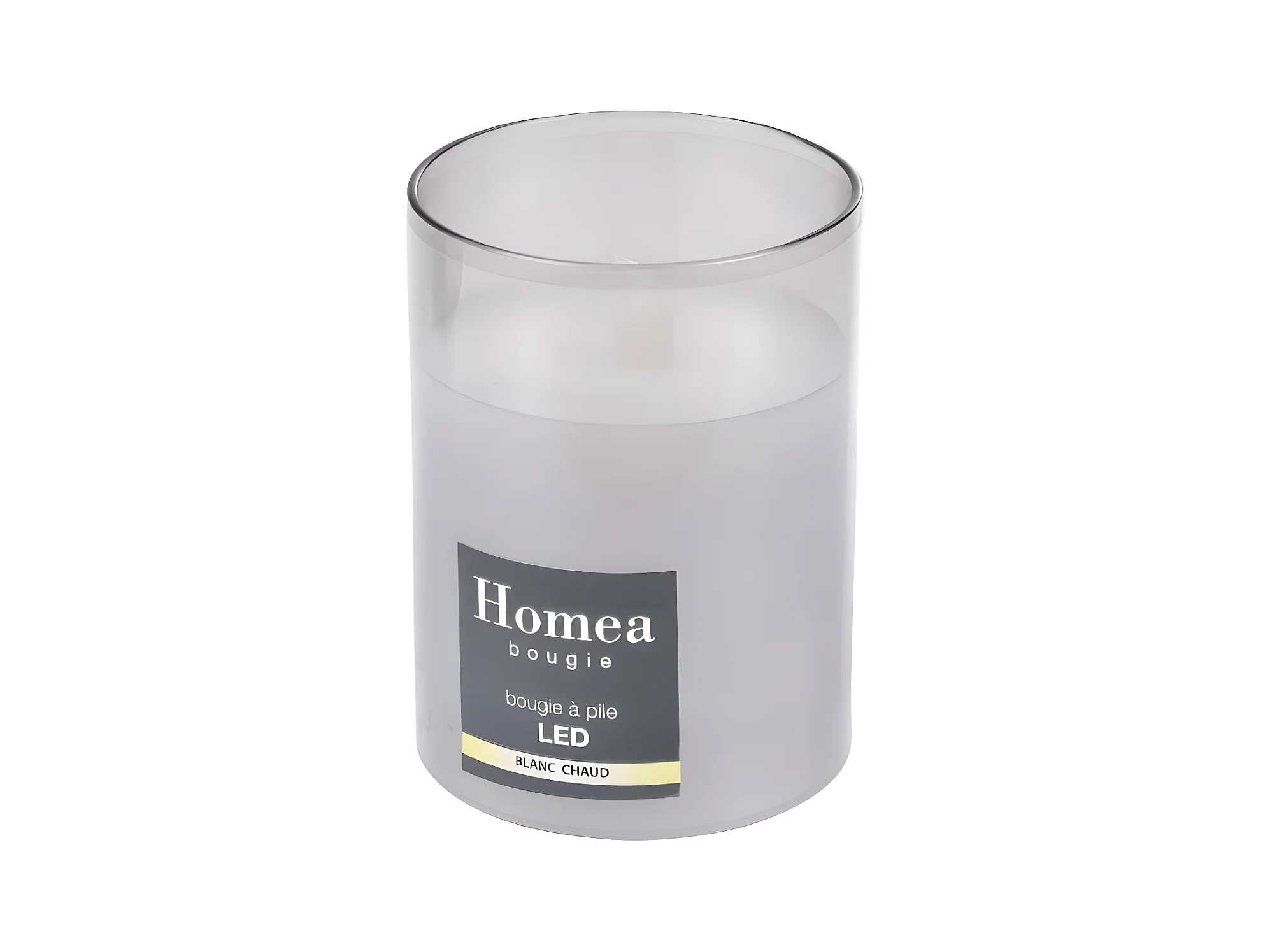 Bougie Ronde LED "Verrine" 15cm Gris Clair