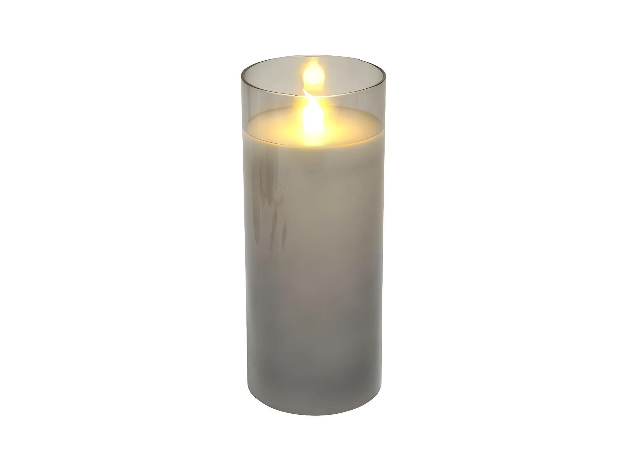 Bougie Ronde LED "Verrine" 20cm Gris Clair