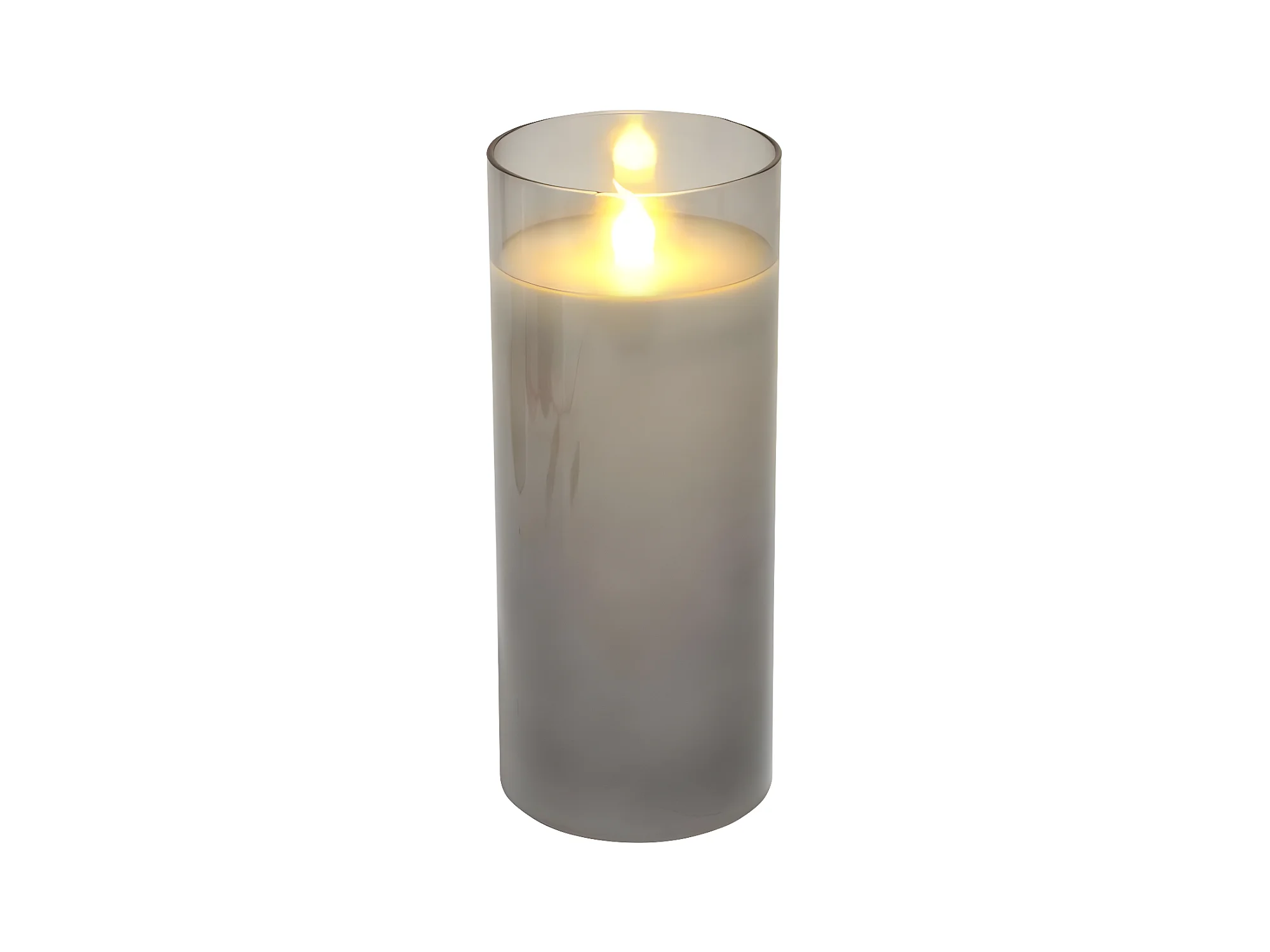 Bougie Ronde LED "Verrine" 20cm Gris Clair
