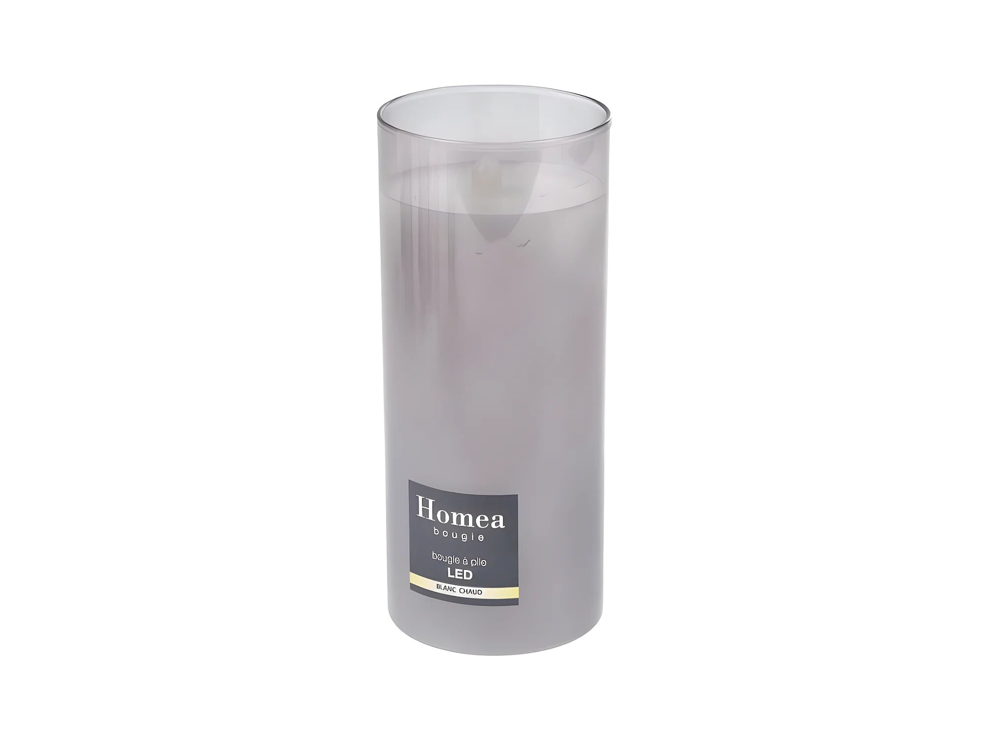 Bougie Ronde LED "Verrine" 15cm Gris Clair