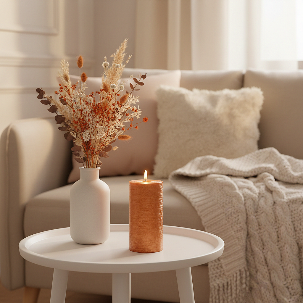 Bougie Cylindrique Déco "Junina" 20cm Orange