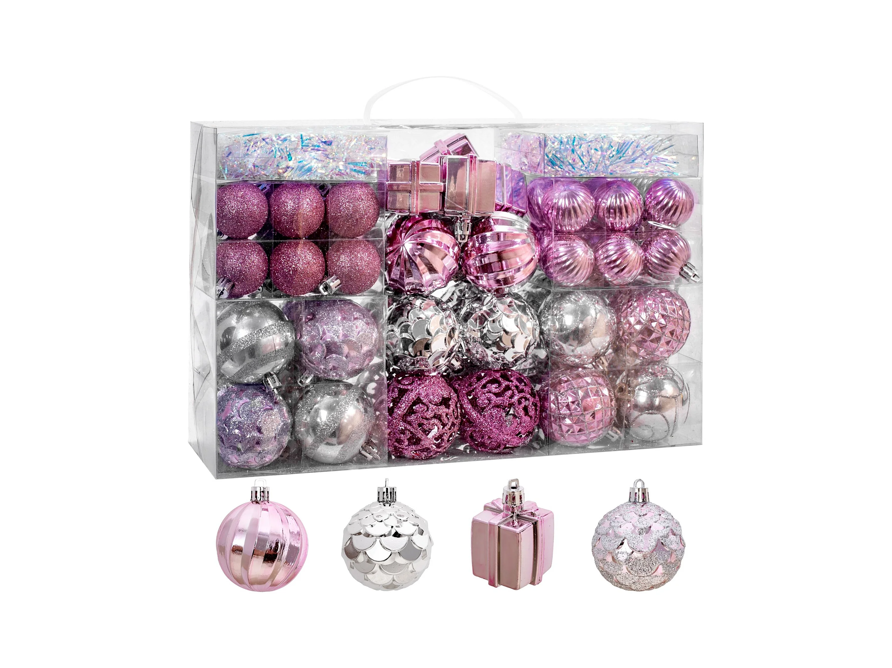 Ensemble de Boules de Noël en Plastique Rose 72 pièces