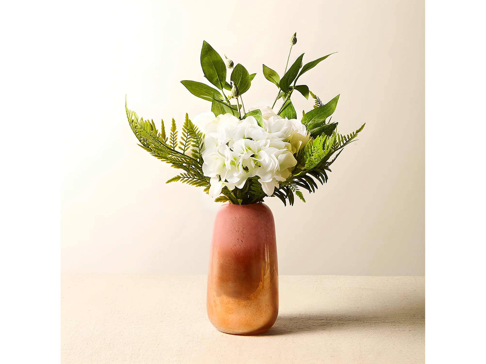 Bouquet D'Hydrangeas, Clématites et Fougères - Blanc / 25 cm