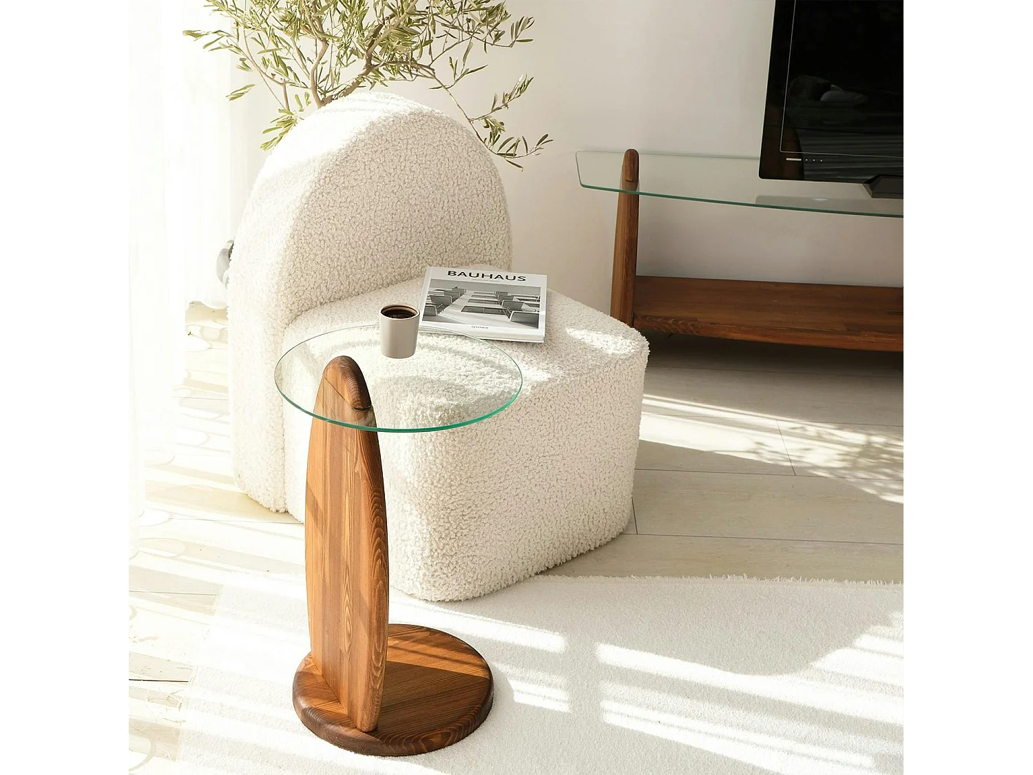 Bout de canapé bois brun et verre - forme ronde ANZIO