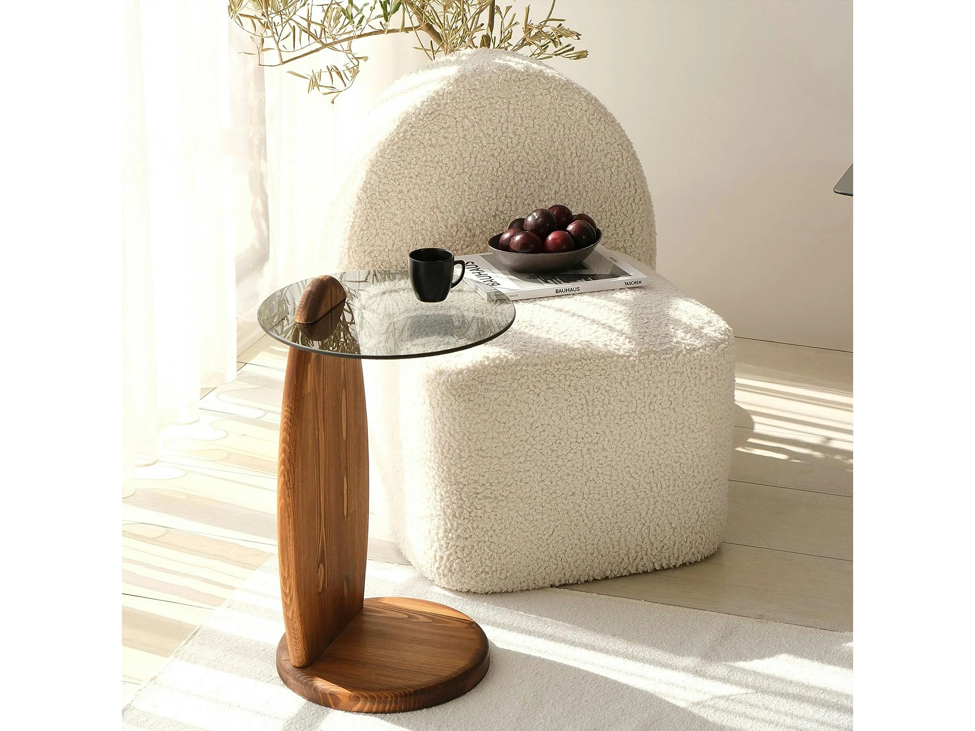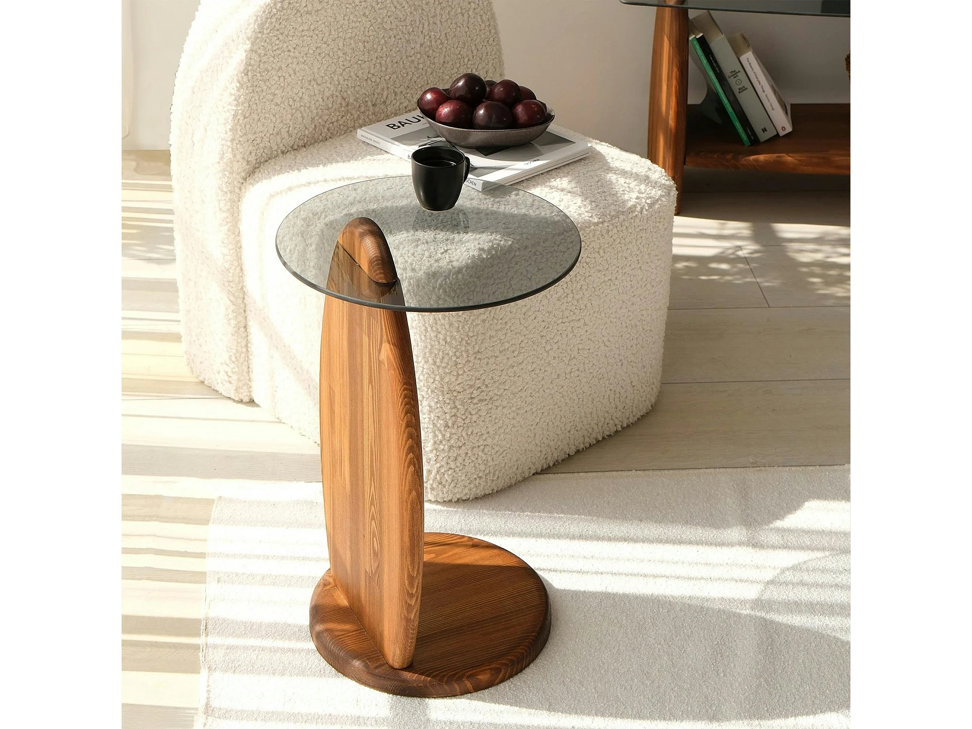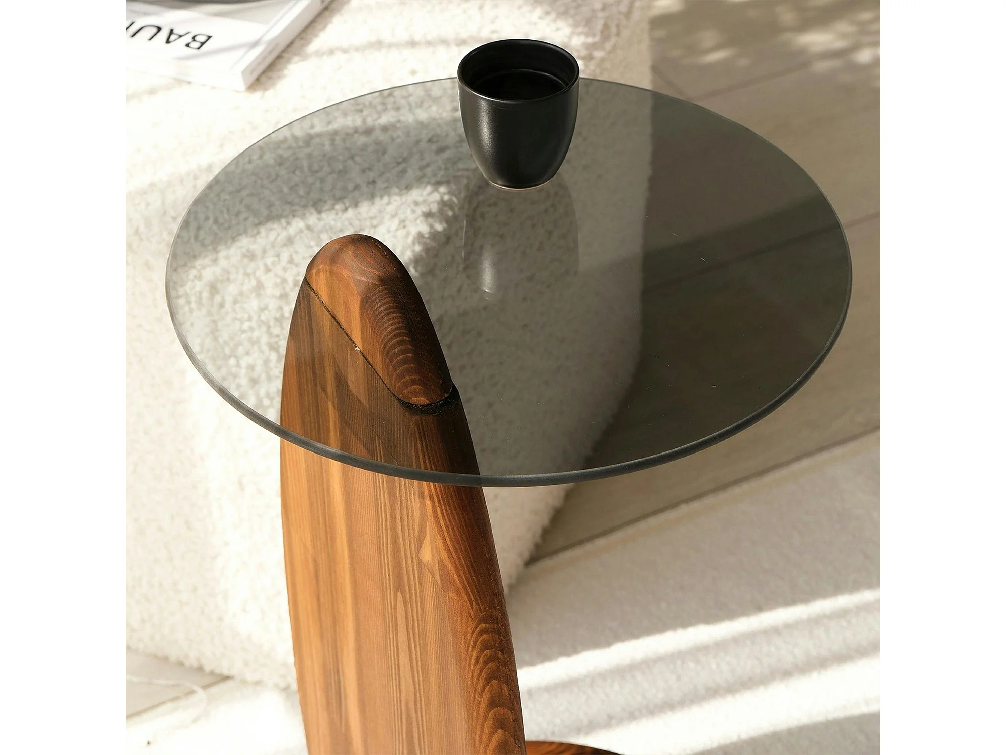 Bout de canapé bois brun et verre fumé - forme ronde ANZIO