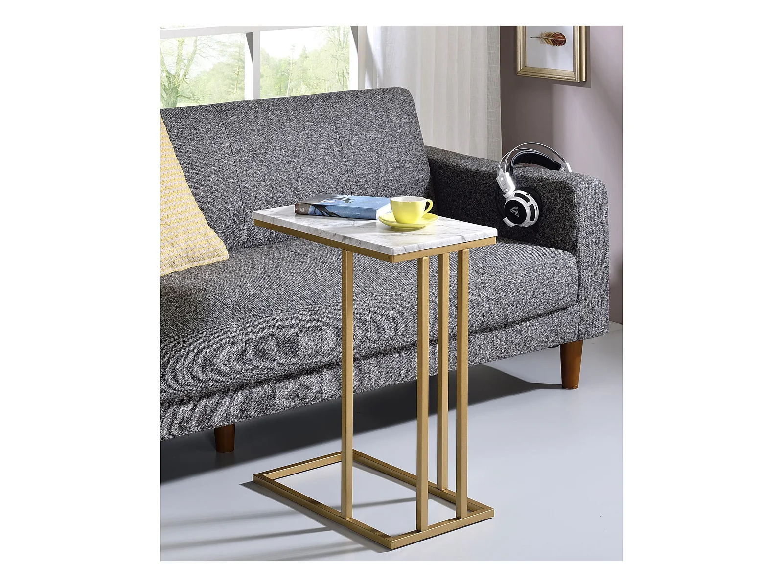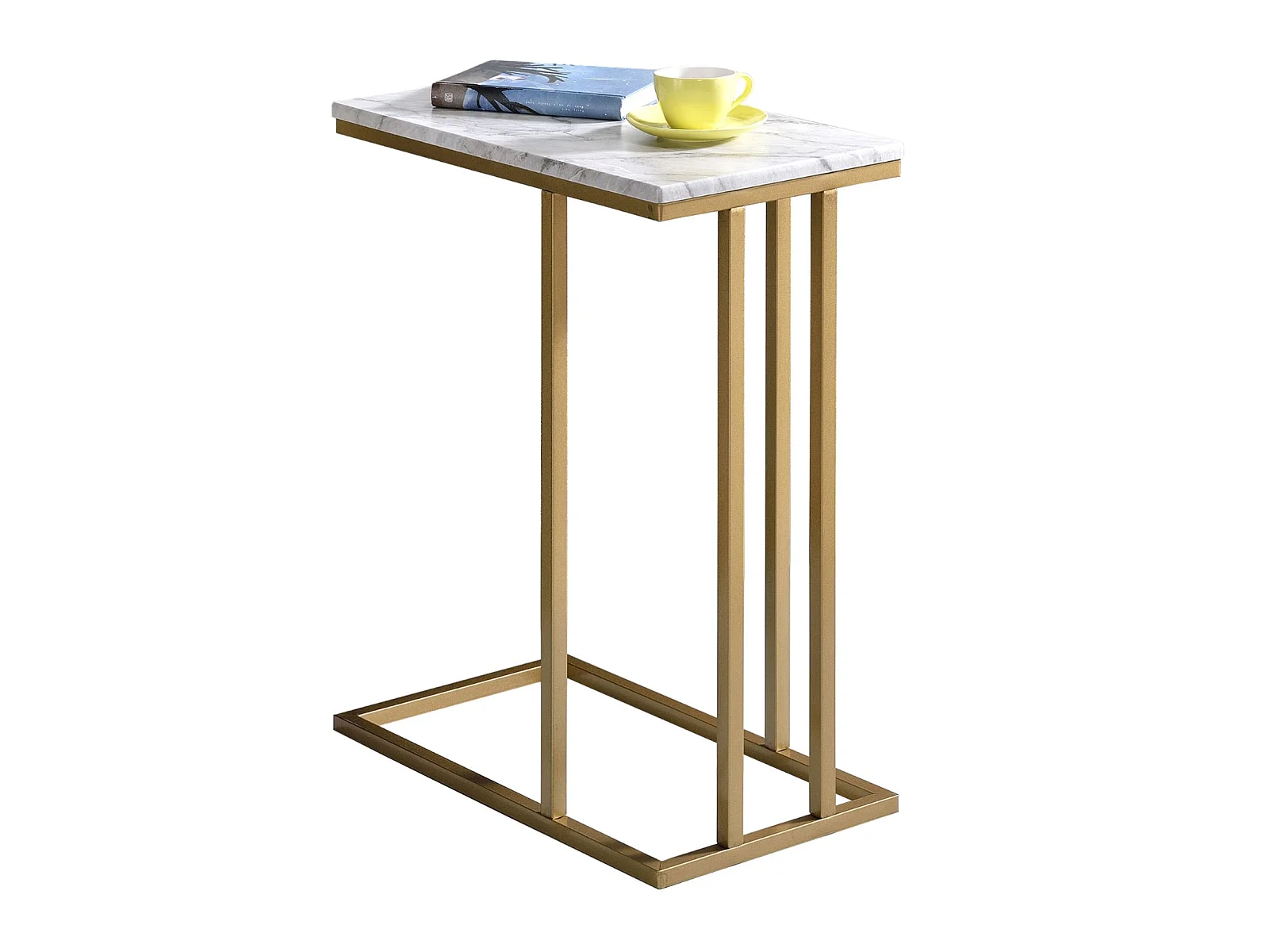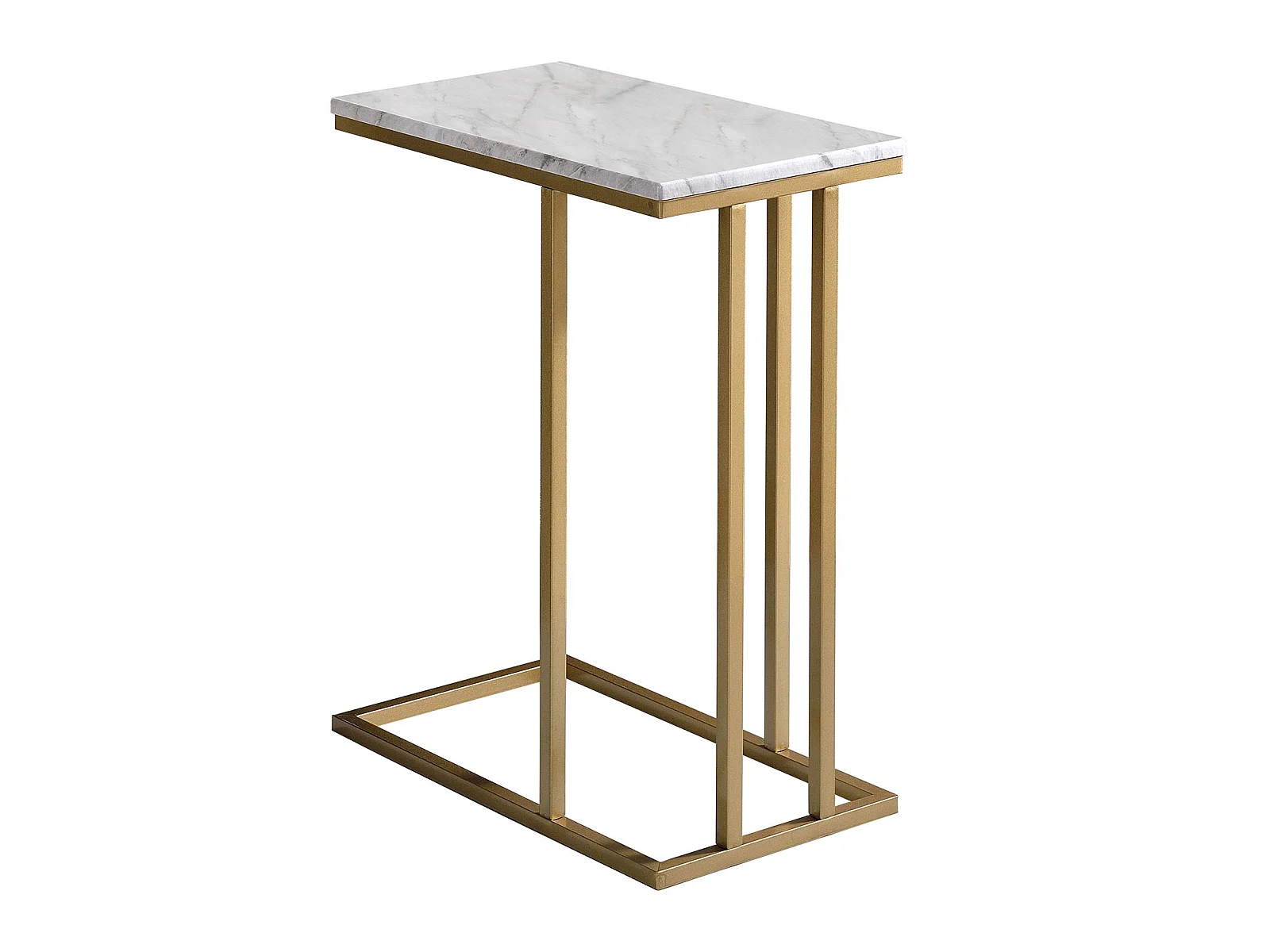 Bout de canapé CARLOTA en métal doré et plateau rectangulaire en MDF décor marbre blanc, table d'appoint table à café table basse