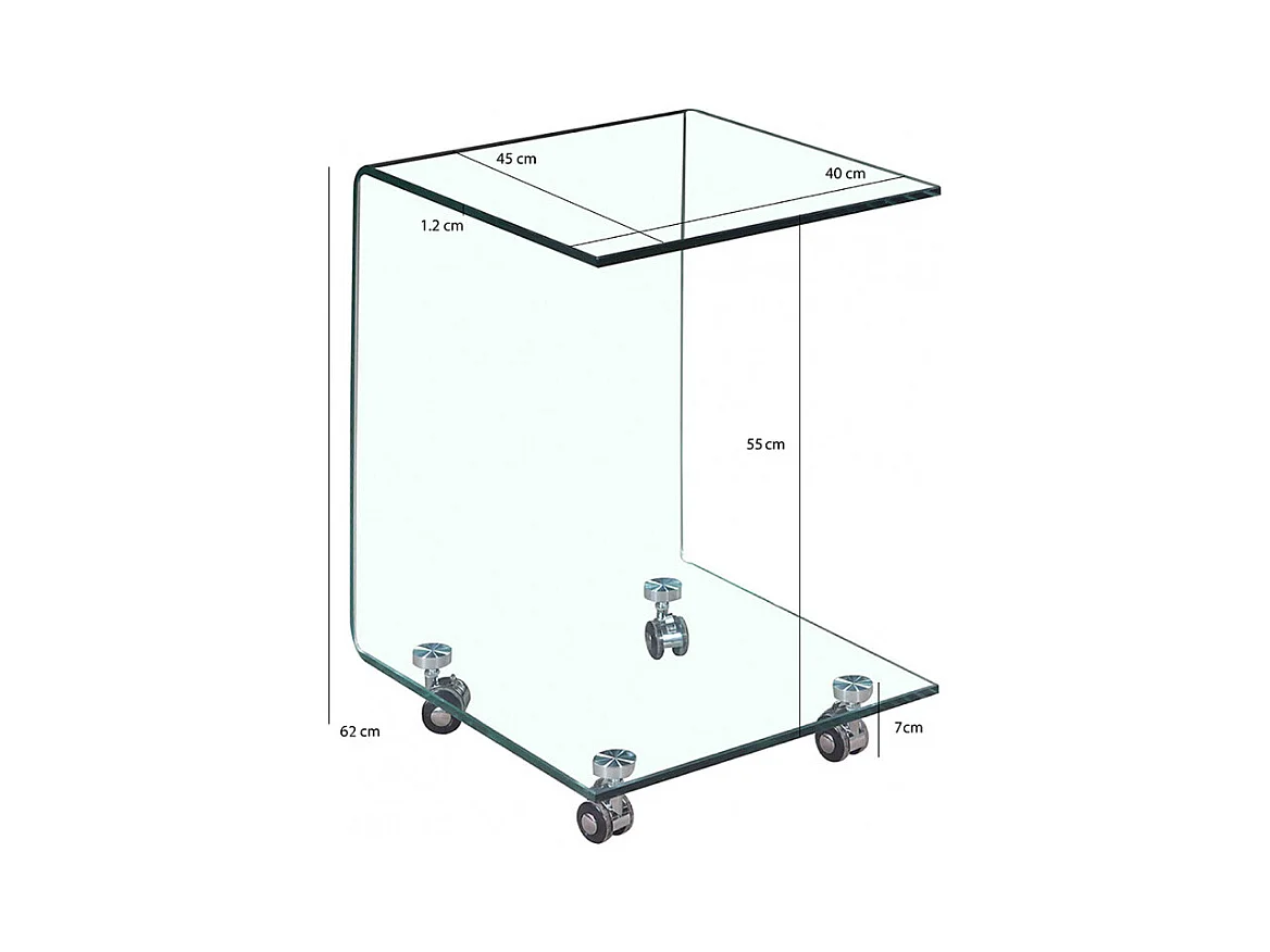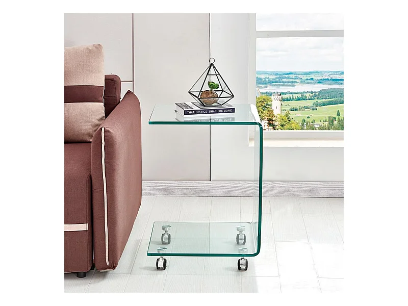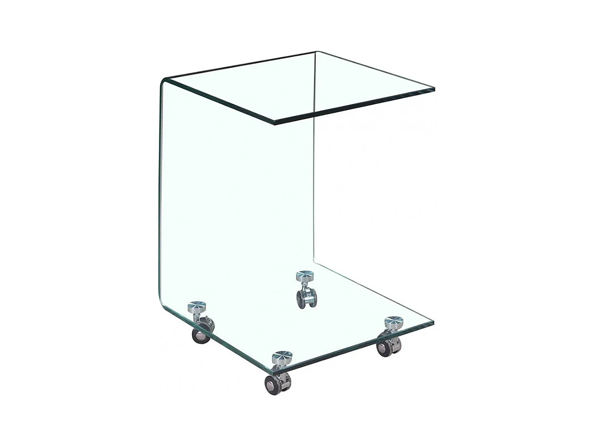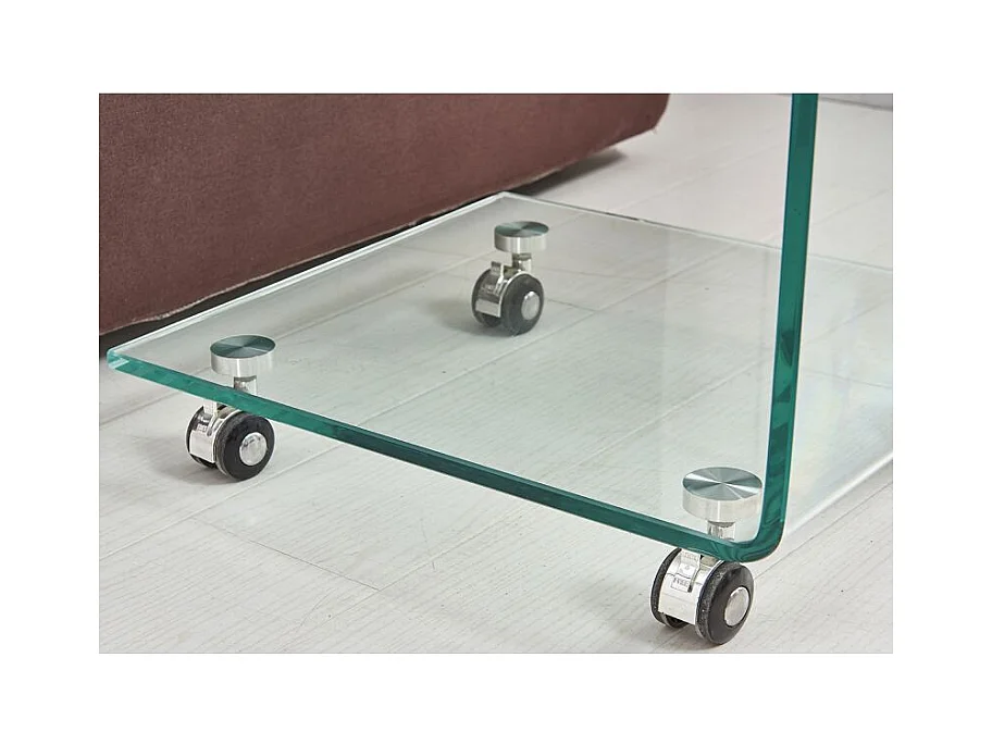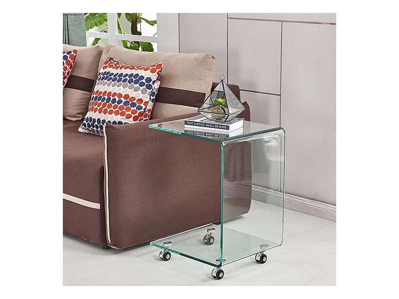 Bout de canapé carré H. 62 cm en verre trempé avec 4 roulettes - ICE