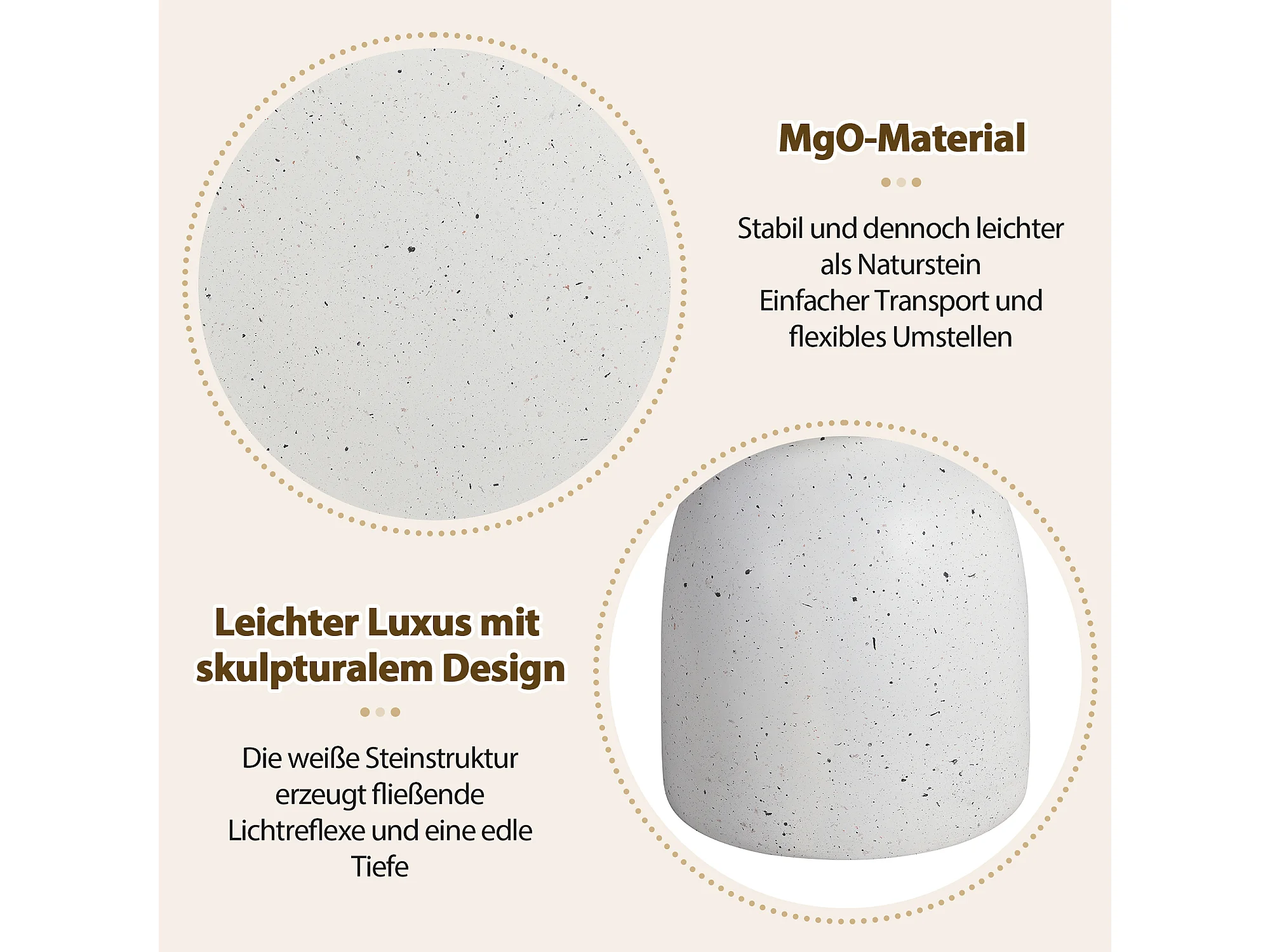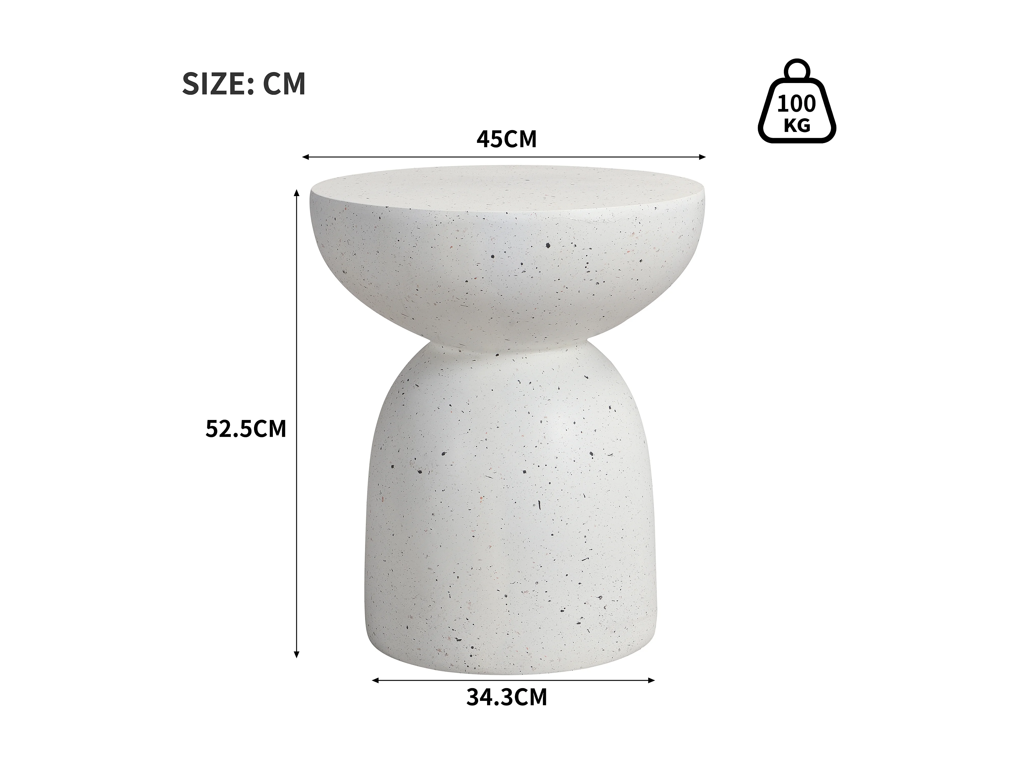 Bout de Canapé de Jardin Design en MgO - Table d'Appoint Sablier Aspect Terrazzo Blanc - Blanc