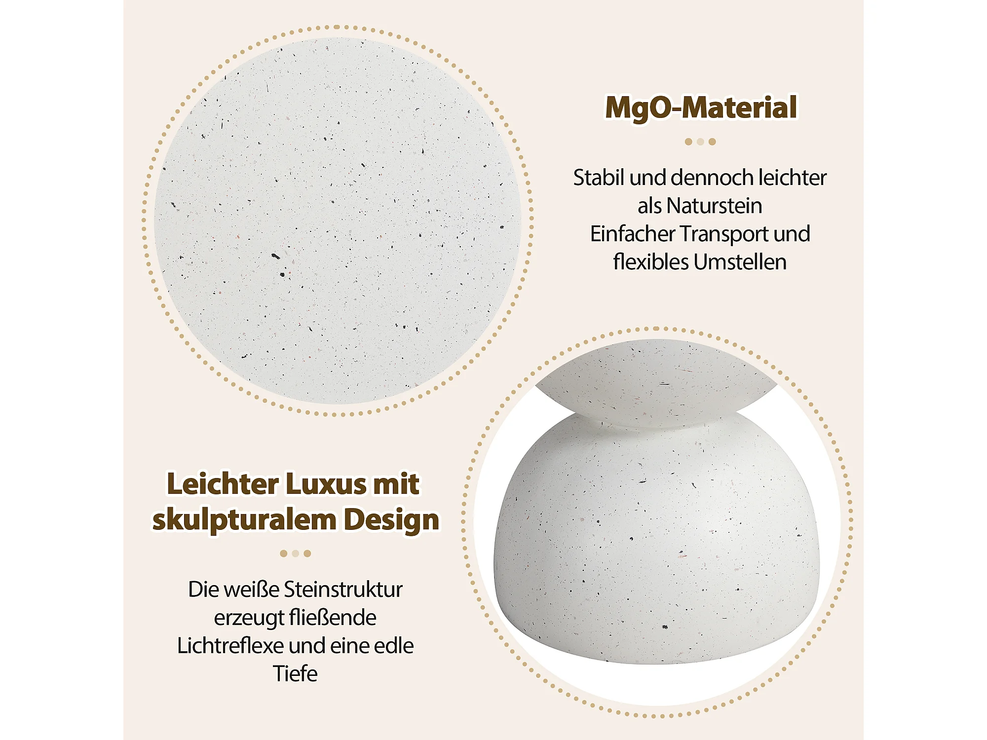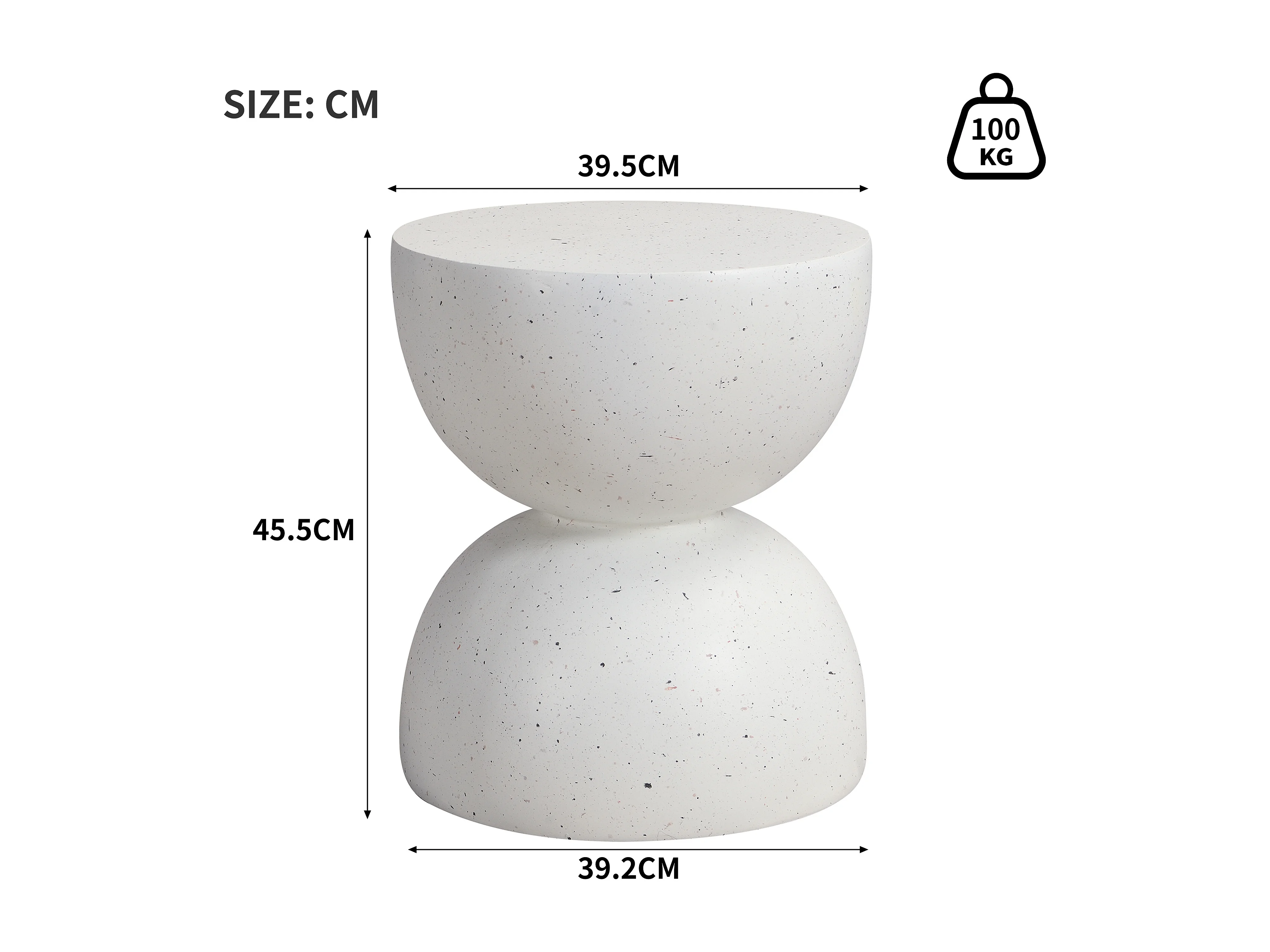 Bout de Canapé de Jardin Moderne en MgO - Table d'Appoint Sablier Aspect Terrazzo Blanc - Blanc
