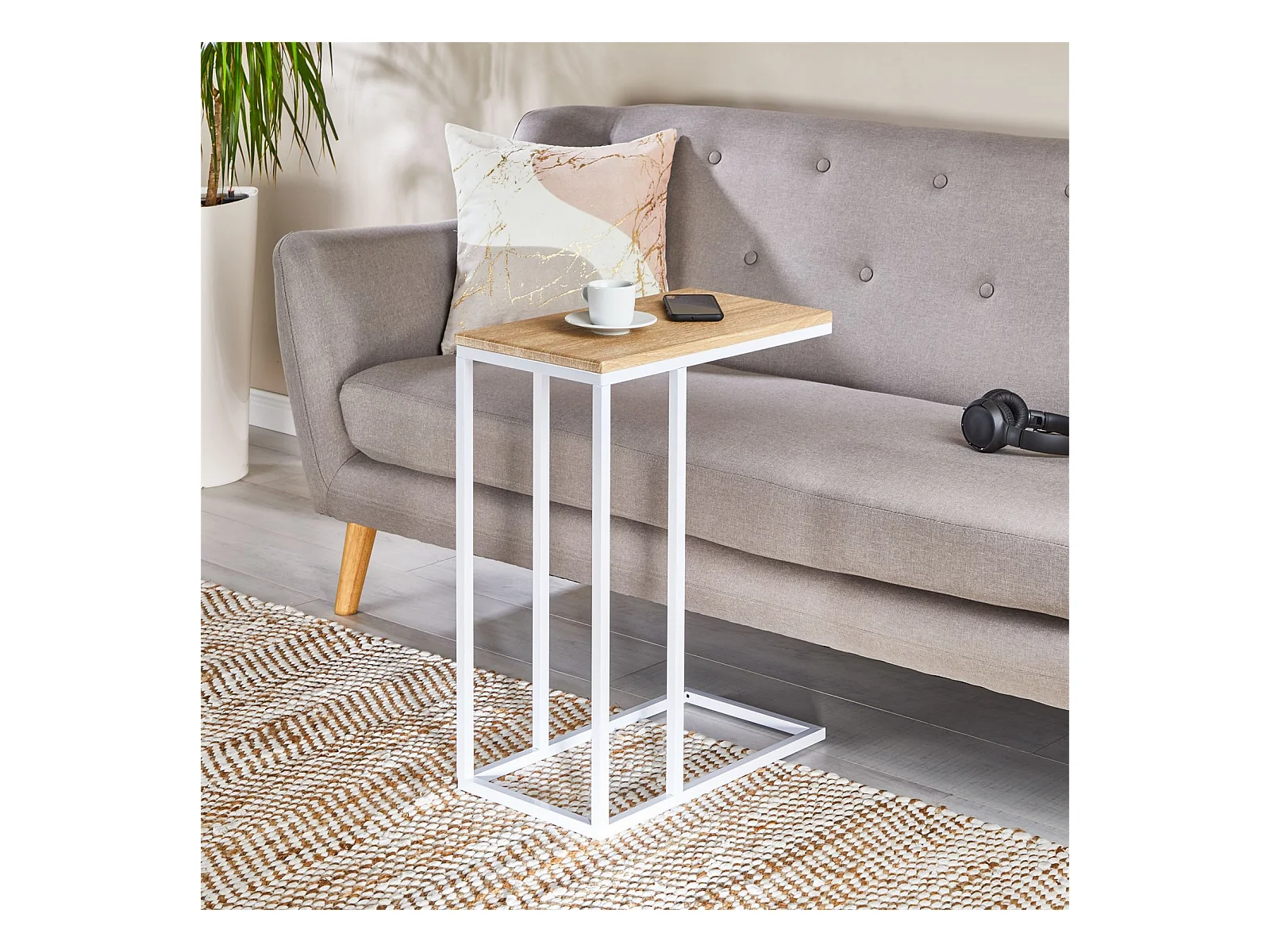 Bout de canapé DEBORA table d'appoint table à café table basse de salon cadre en métal blanc plateau en MDF décor chêne sonoma