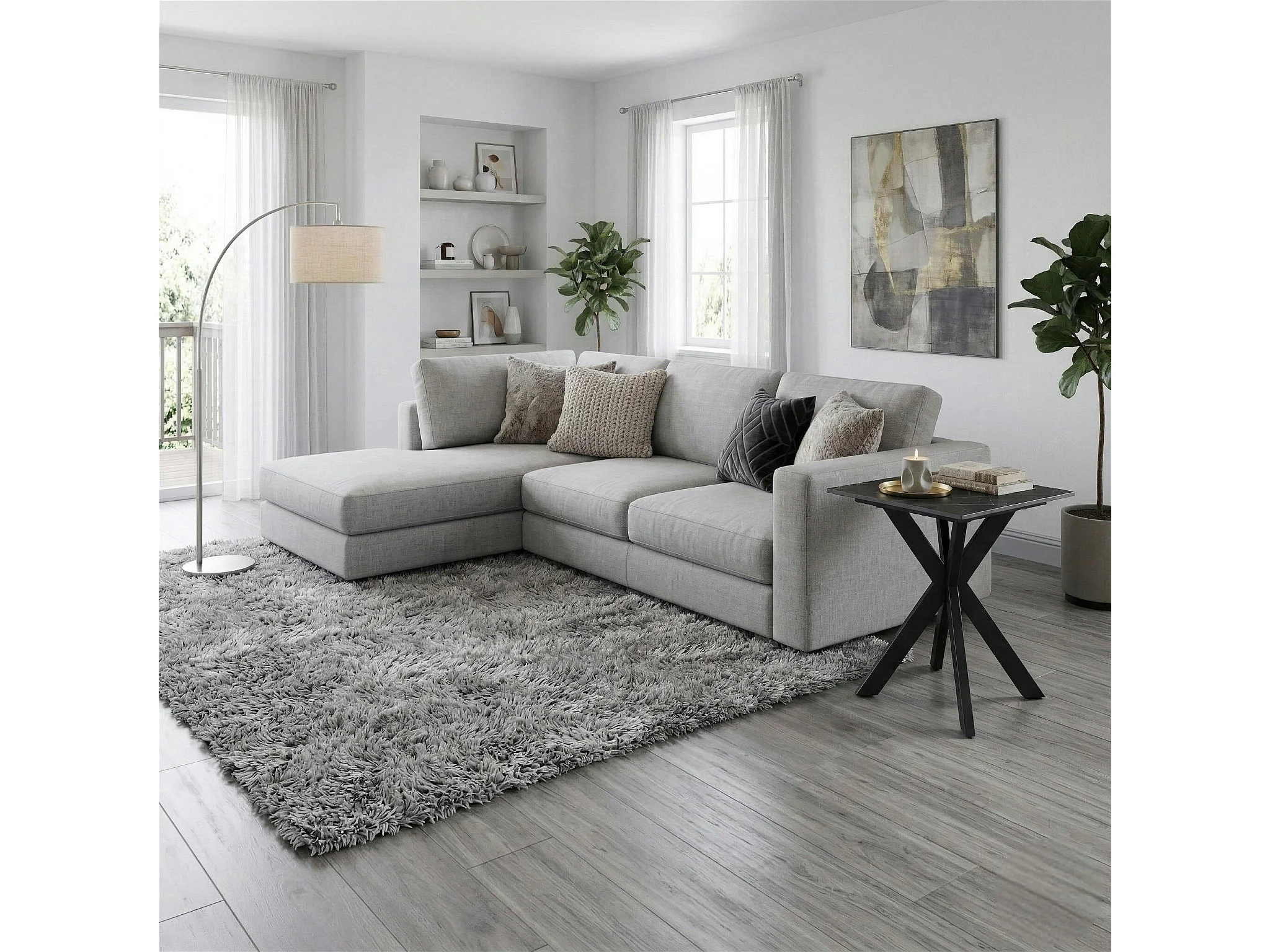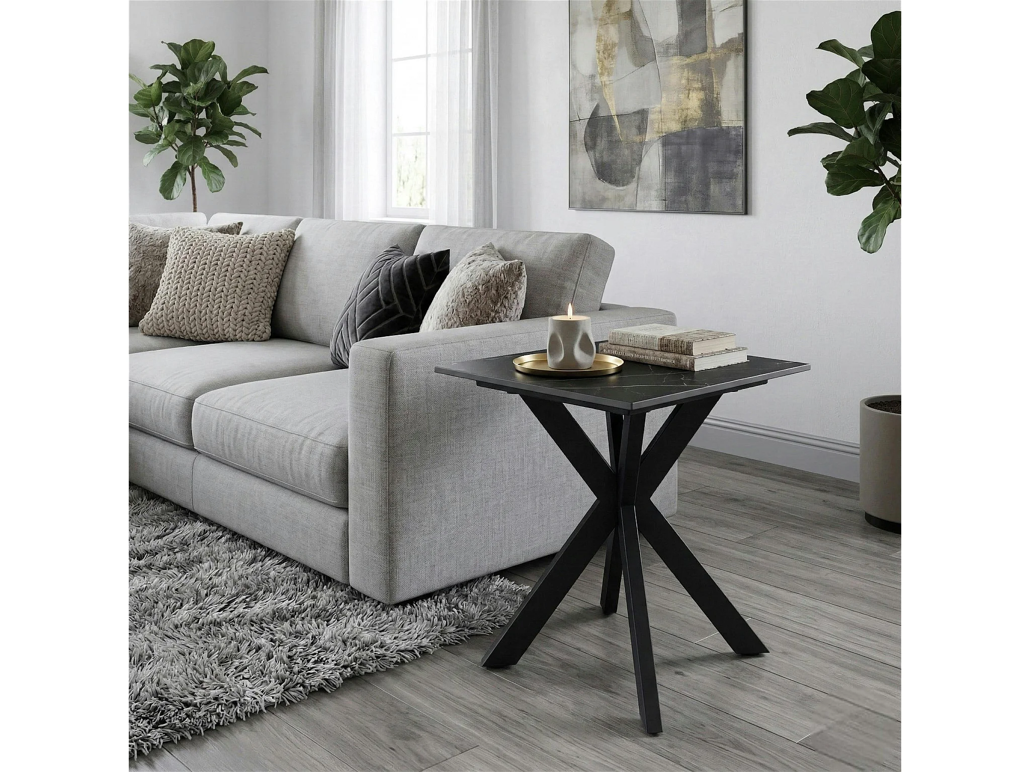 Bout de canapé design en céramique noire marbrée OTTAWA