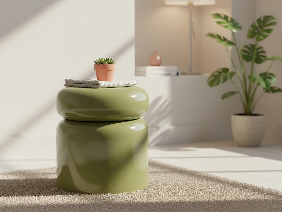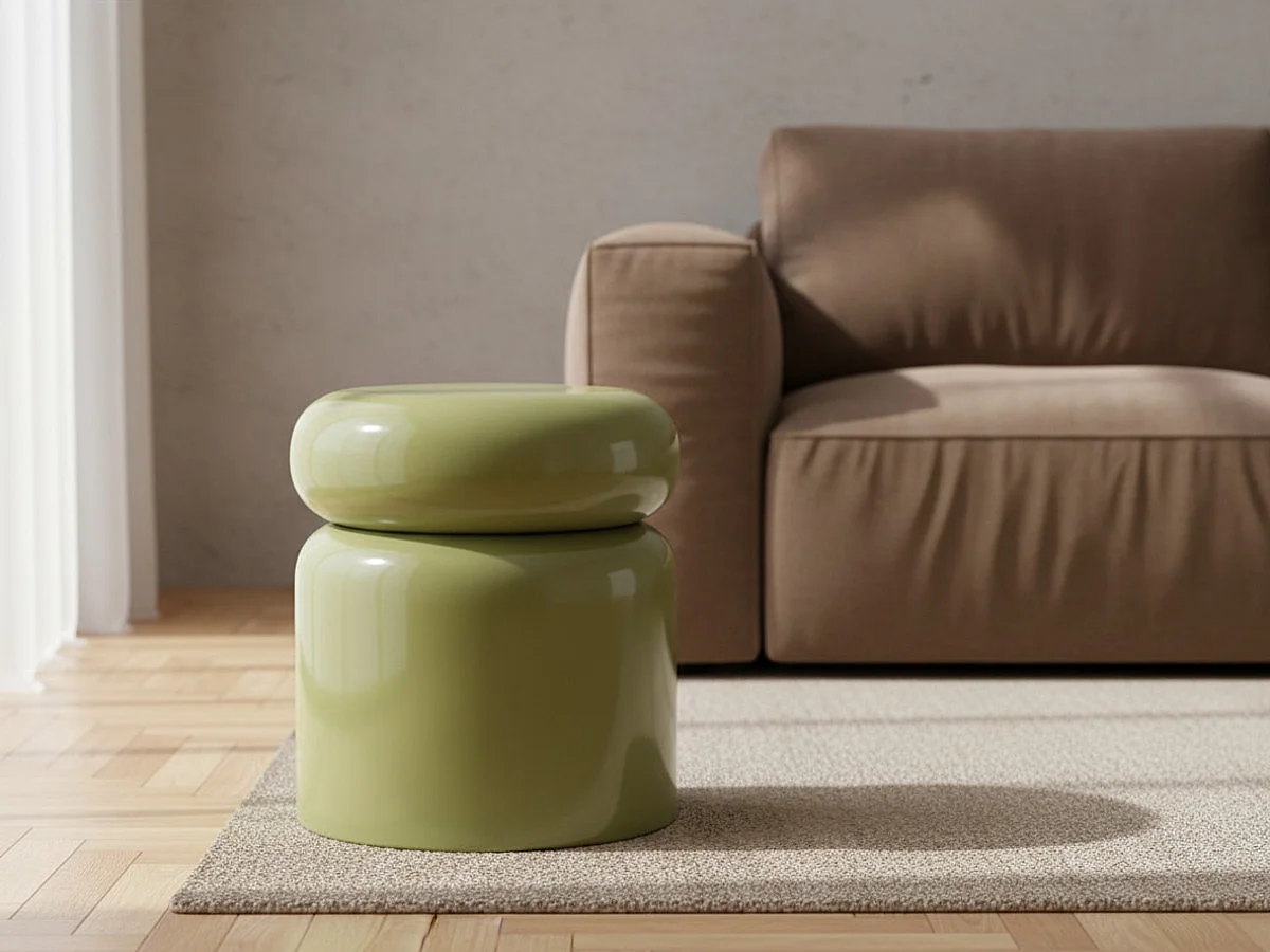 Bout de canapé rond en métal émaillé vert D50 - MANILA
