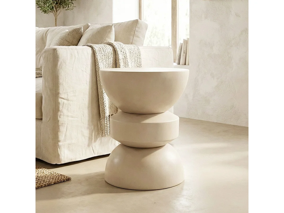 Bout de canapé en résine beige mat Ø30 cm - Elin