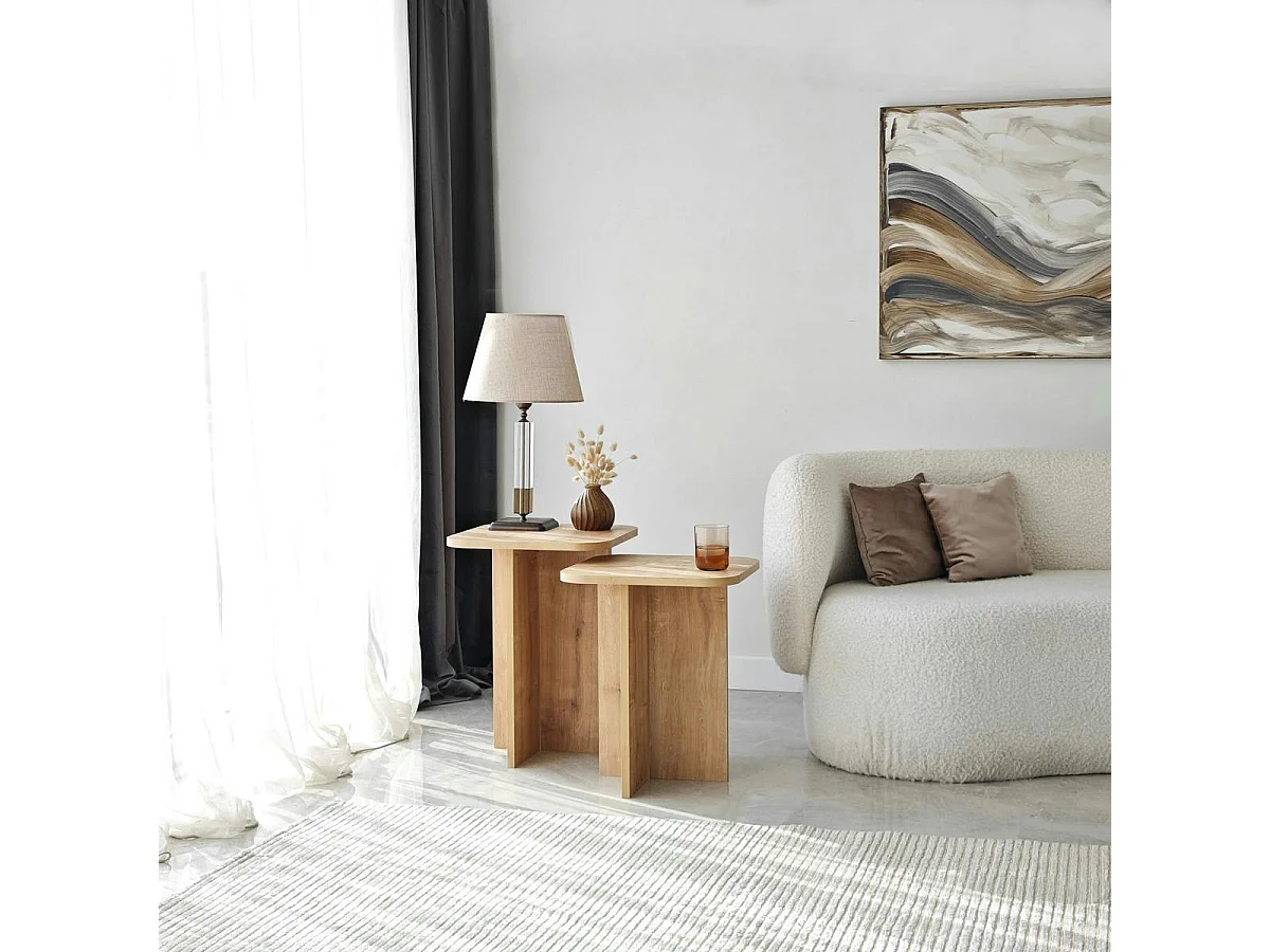 Bout de canapé gigogne bords arrondis décor bois (x2) MARFA