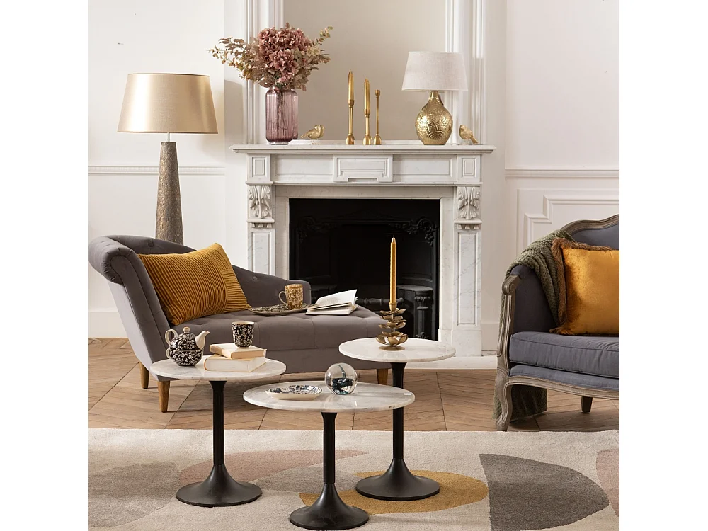Bout de canapé Marbre blanc 55 cm