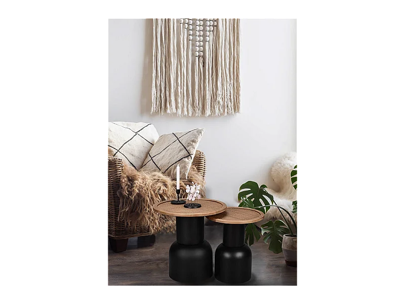 Bout de canapé noir et bois Taille M