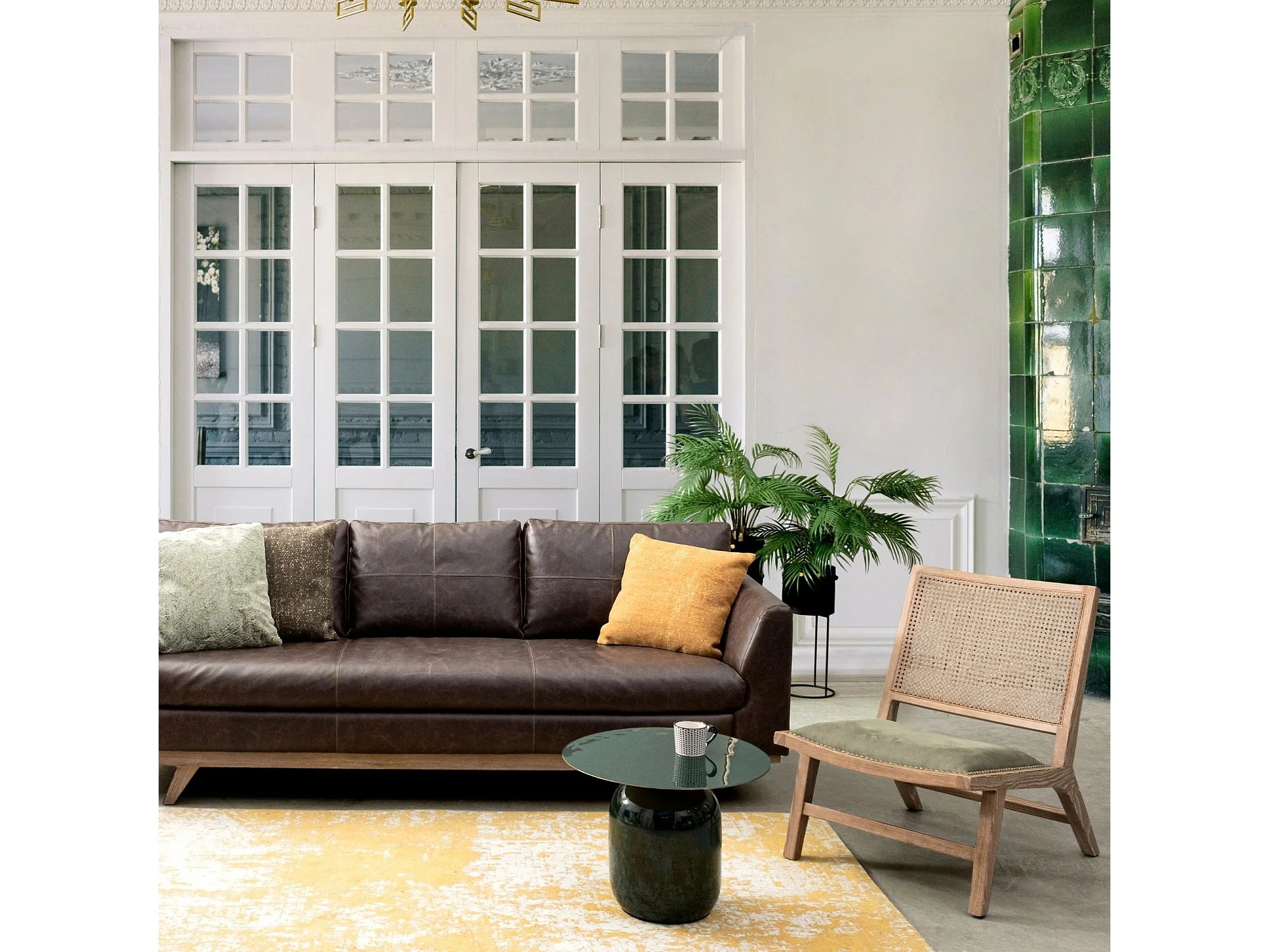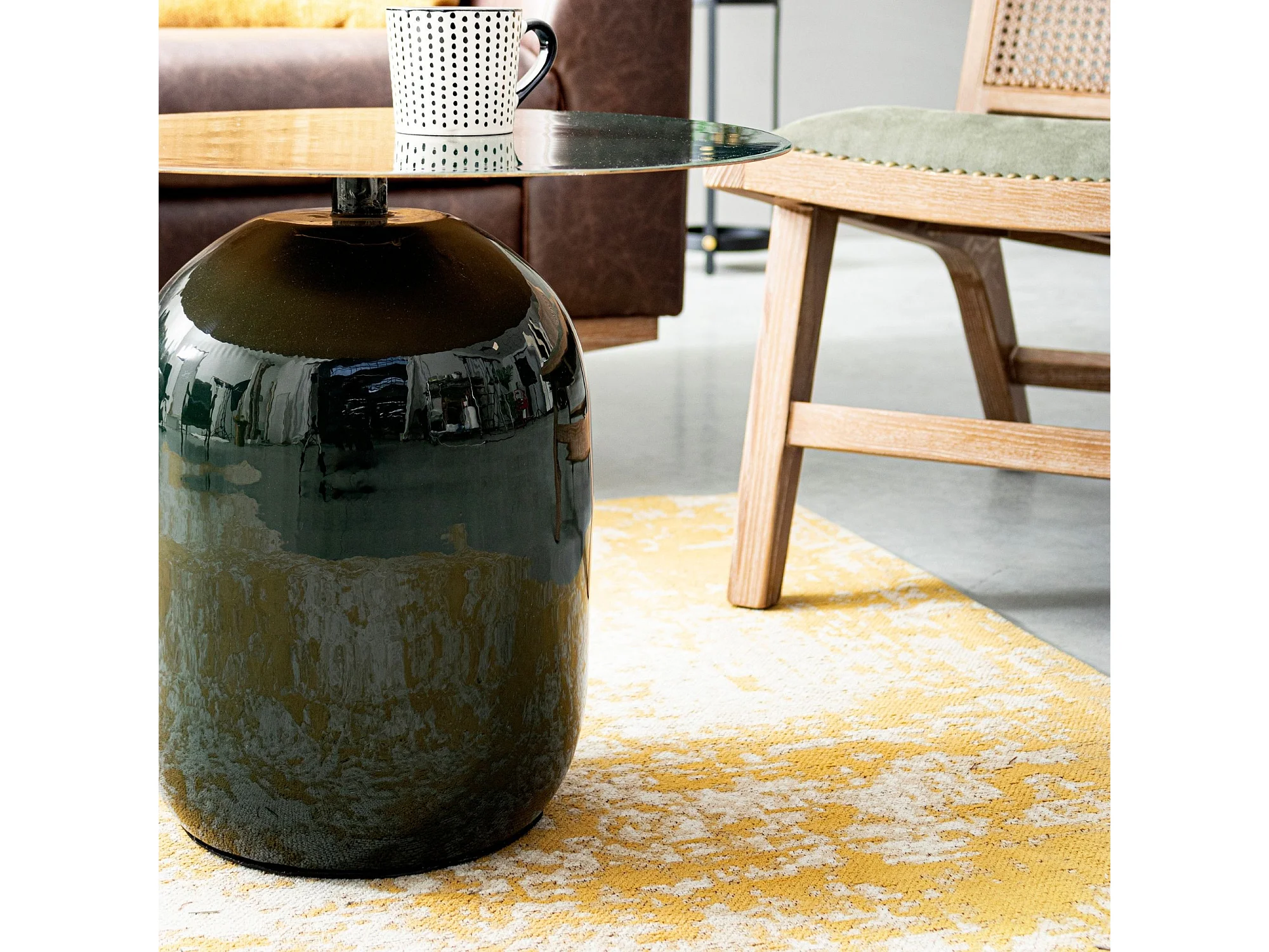 Bout de canapé rond en métal émaillé vert D50 - MANILA