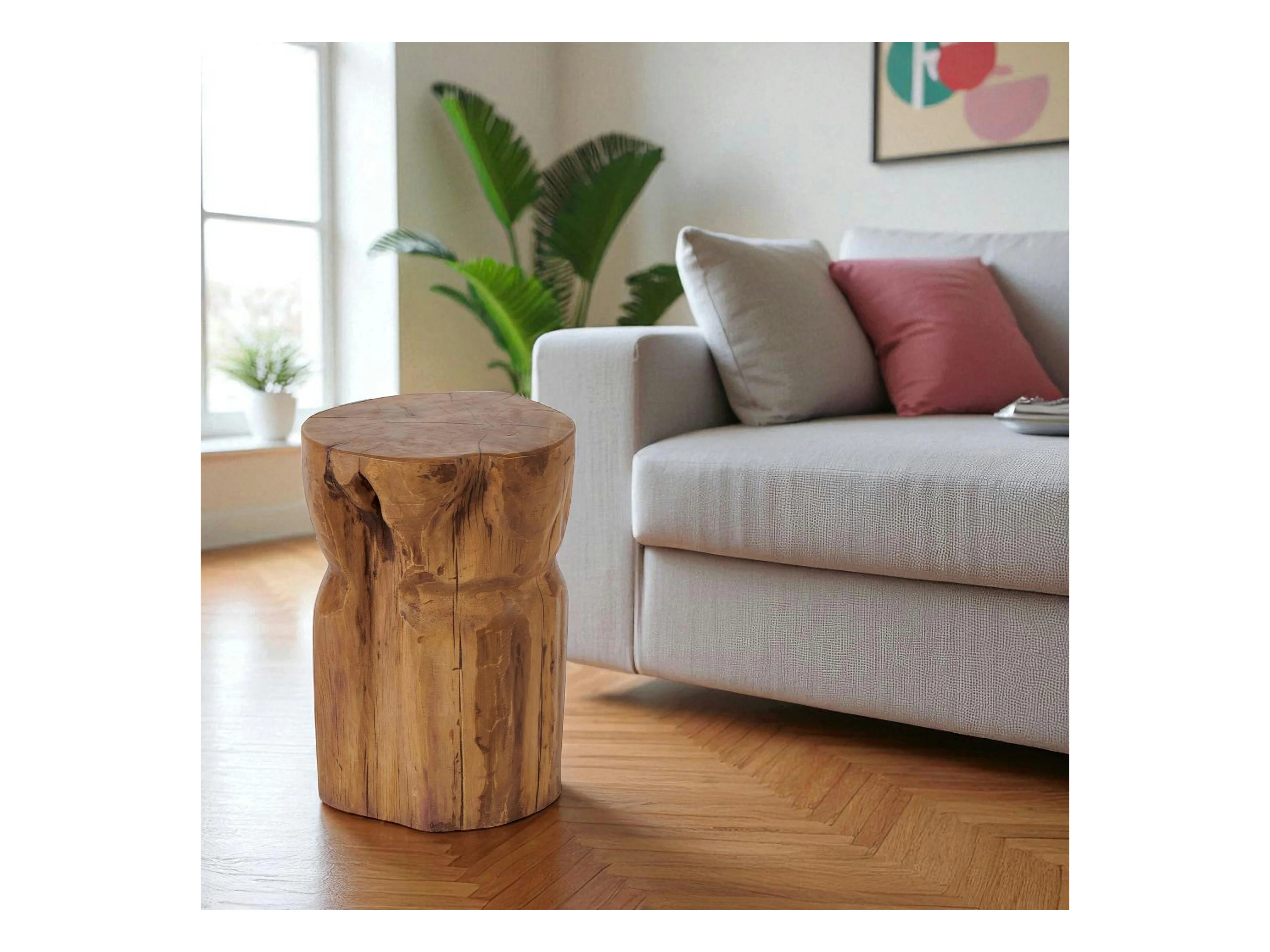 Bout de canapé rond en teck massif – style naturel ARIZONA