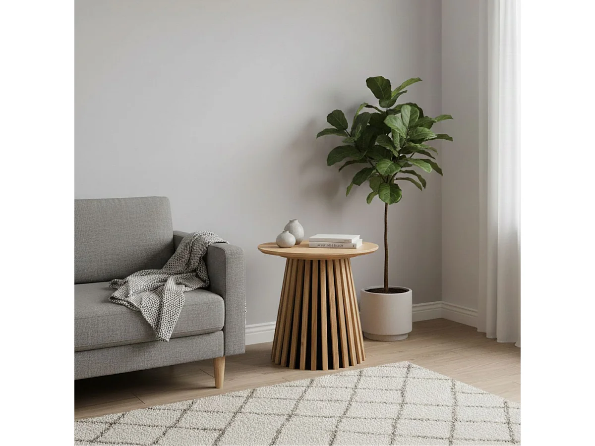 Bout de canapé Rond Pied Central Relief MDF Placage Chêne clair - DUBLIN