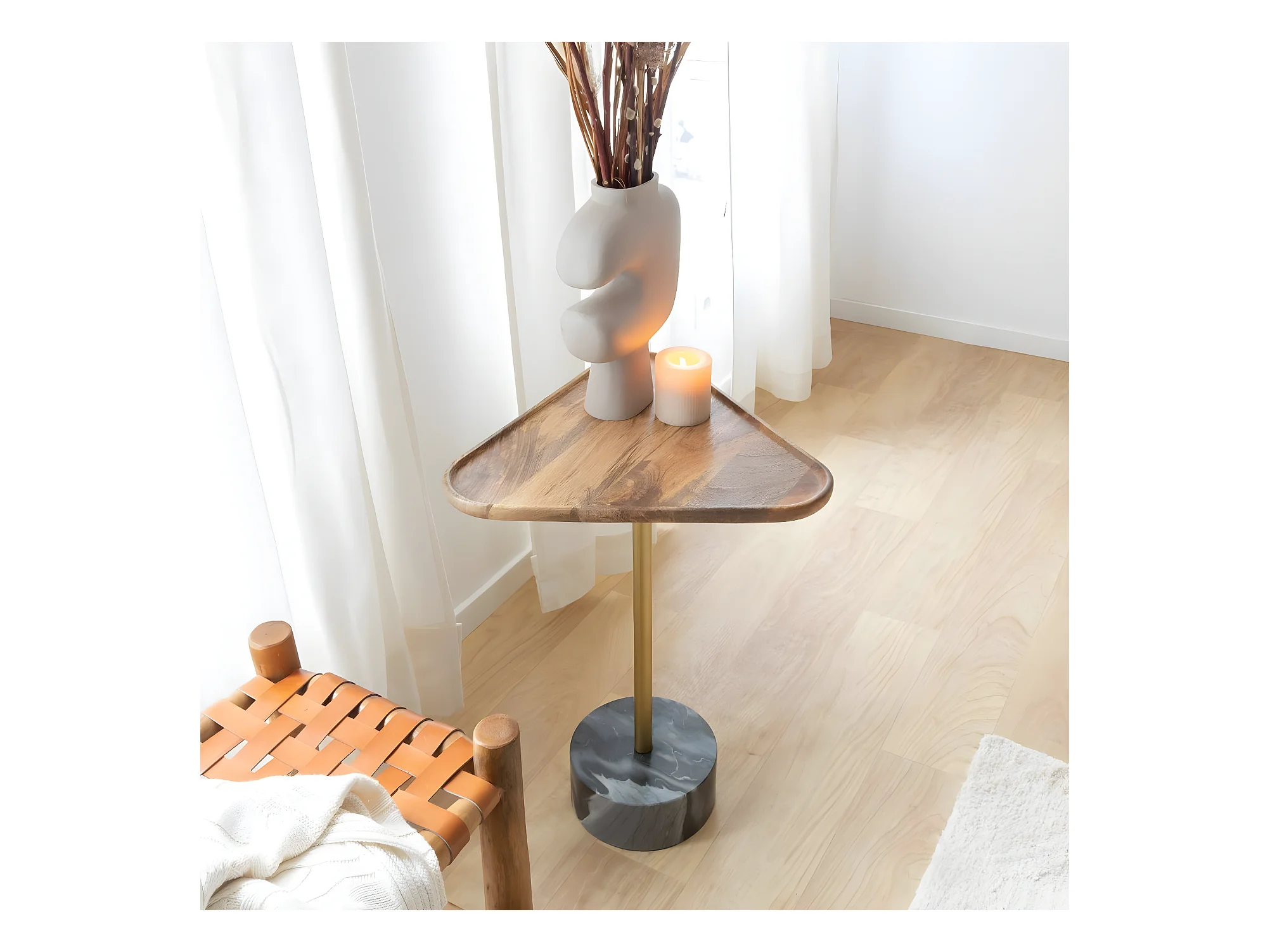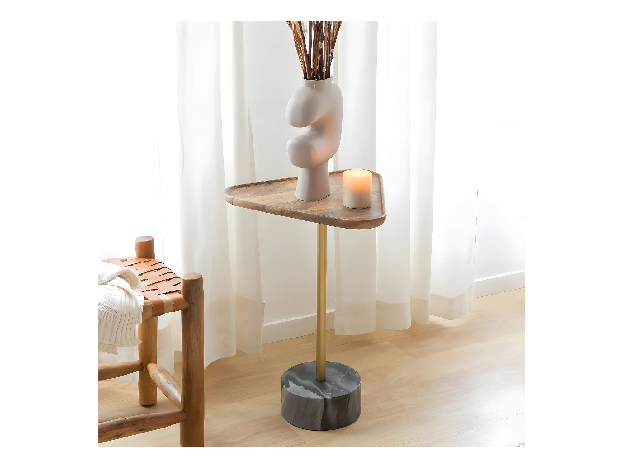 Force Wide - Table d’appoint en bois et marbre ø50cm - Brun