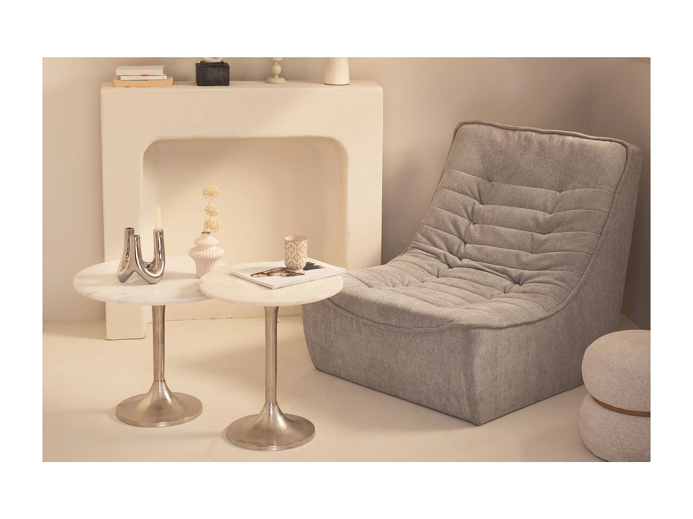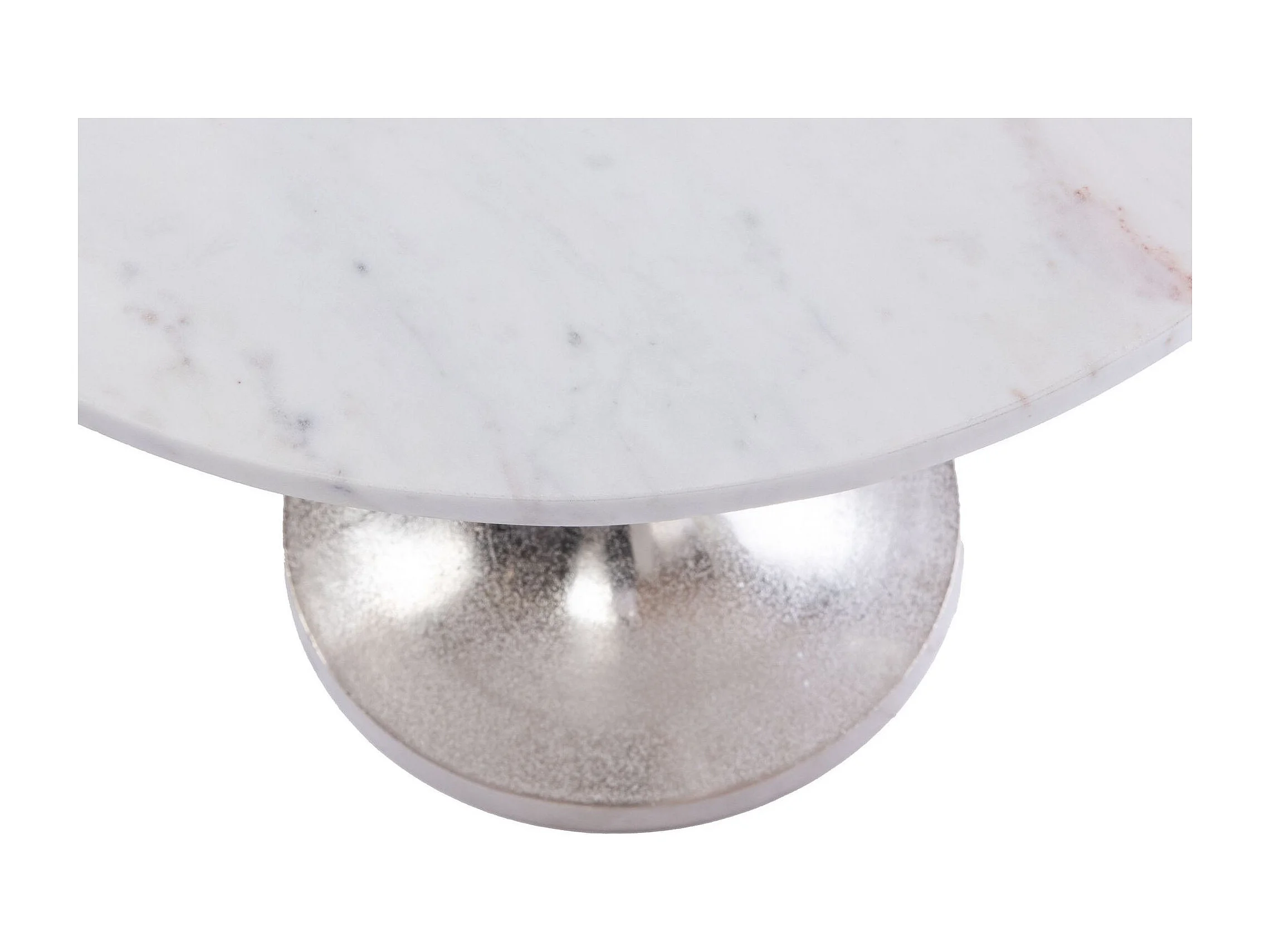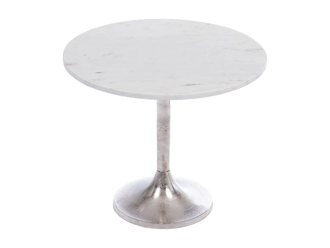 Bout de canapé tulipe en métal argenté et marbre blanc D55 - PLAKA