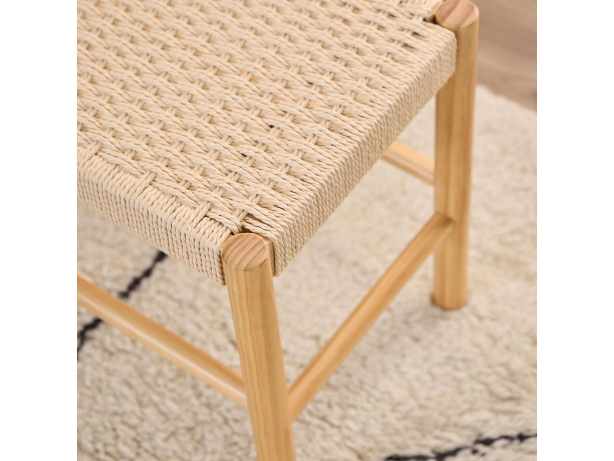Victor - Banc en corde tressée et bois L90cm - Bois clair