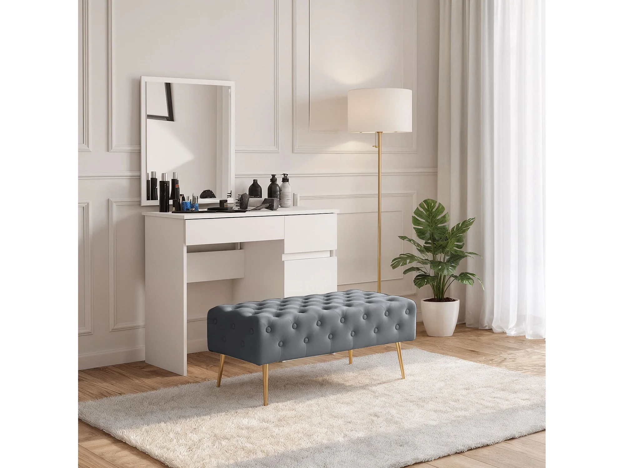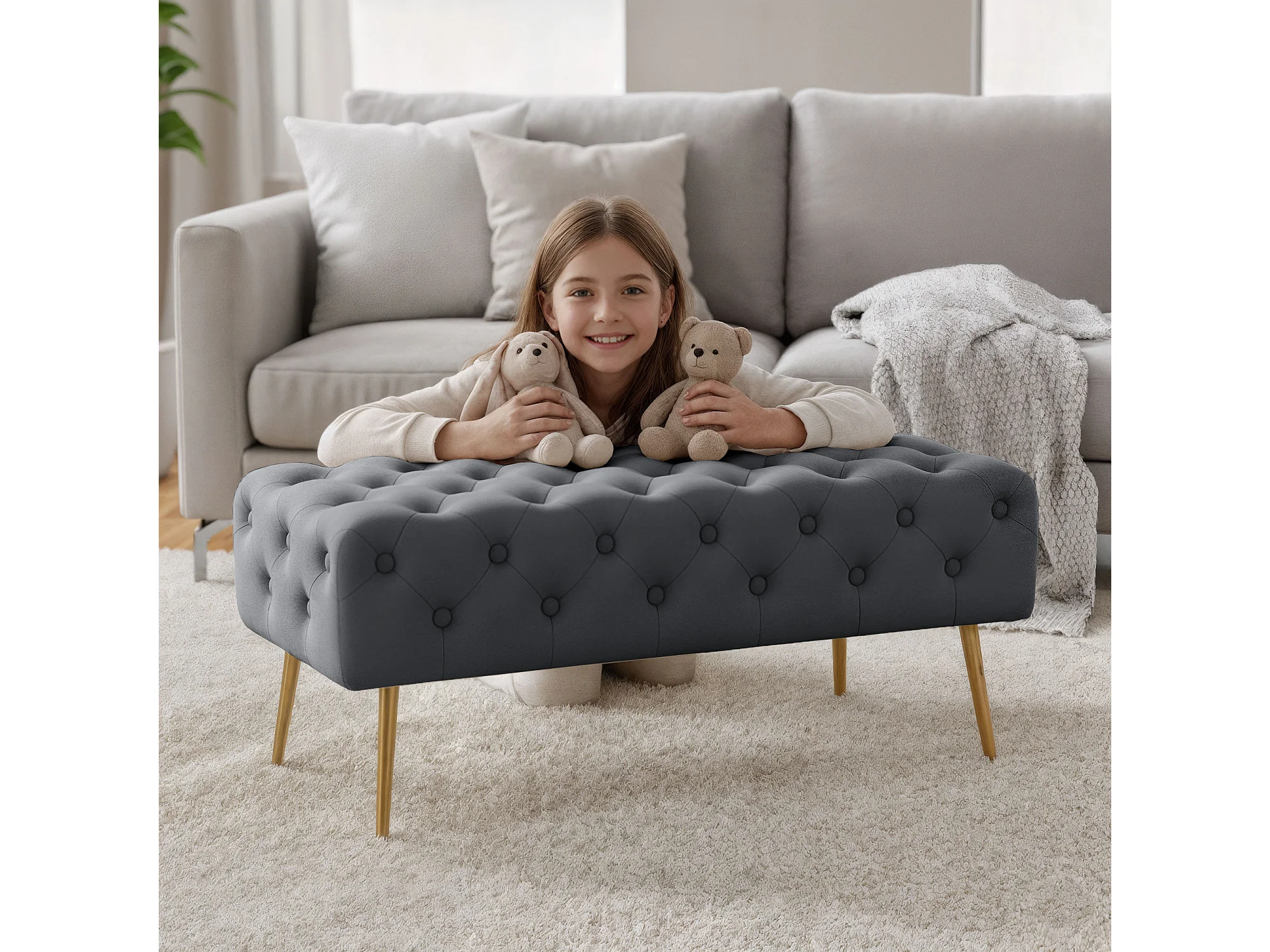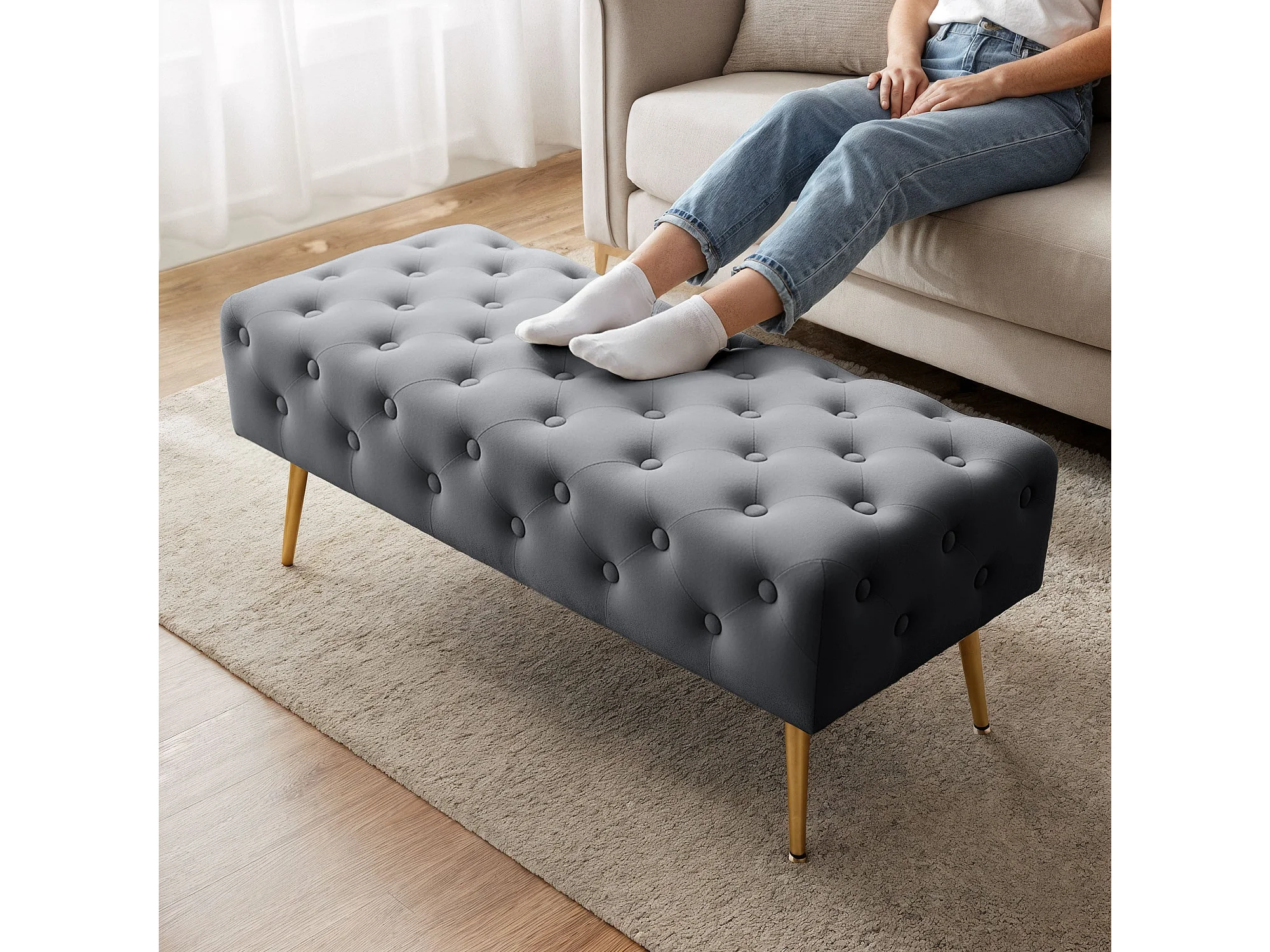 Bout de lit en velours capitonné 100 cm MONACO Gris Foncé