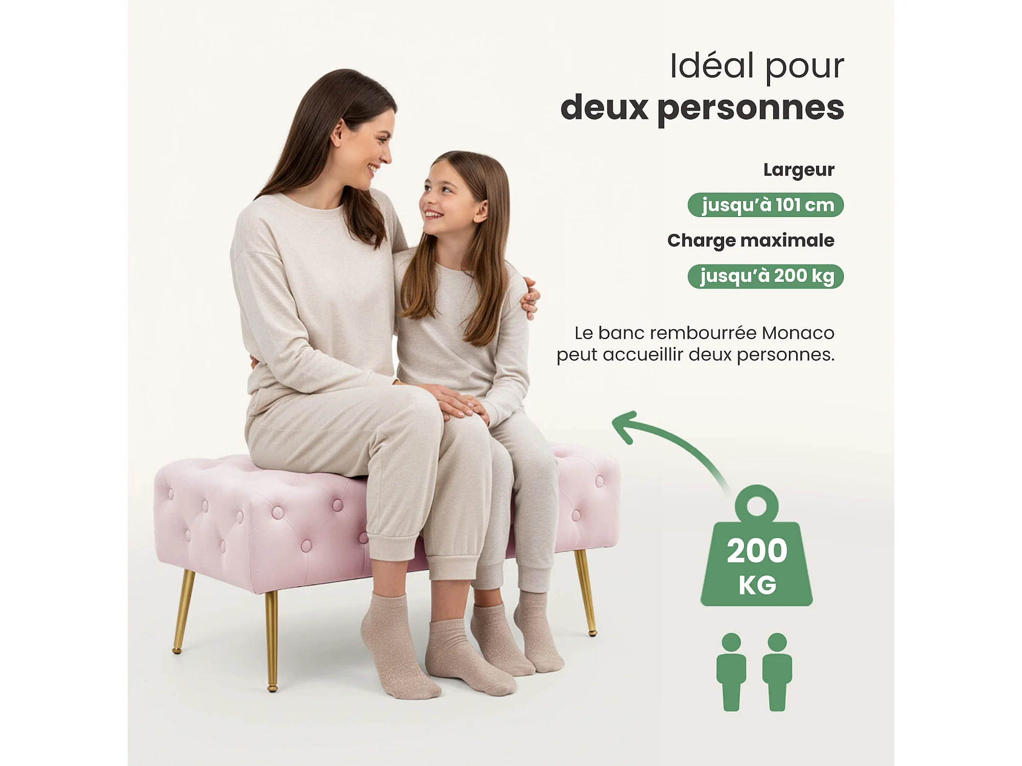Bout de lit en velours capitonné 100 cm MONACO Rose Poudré