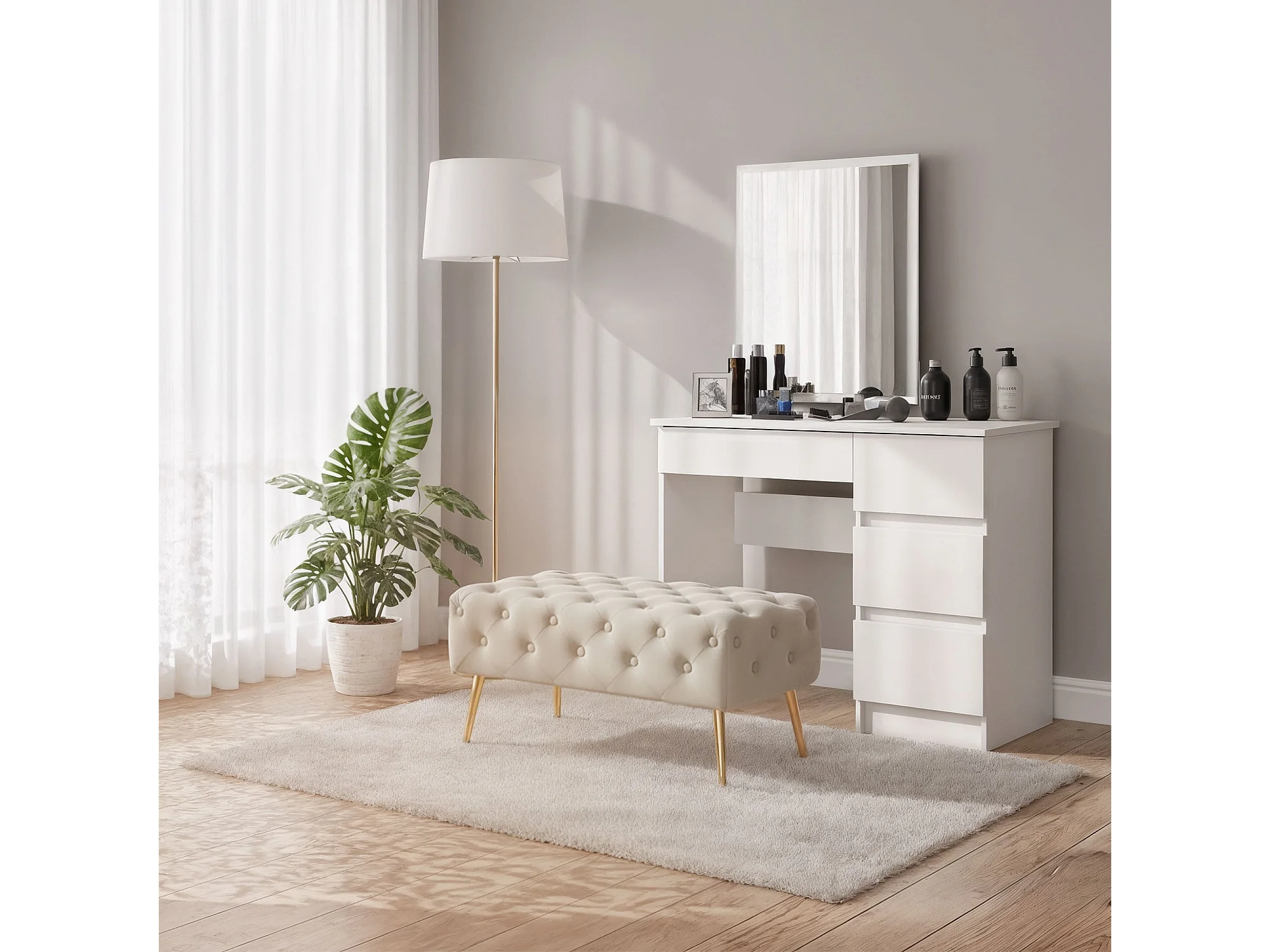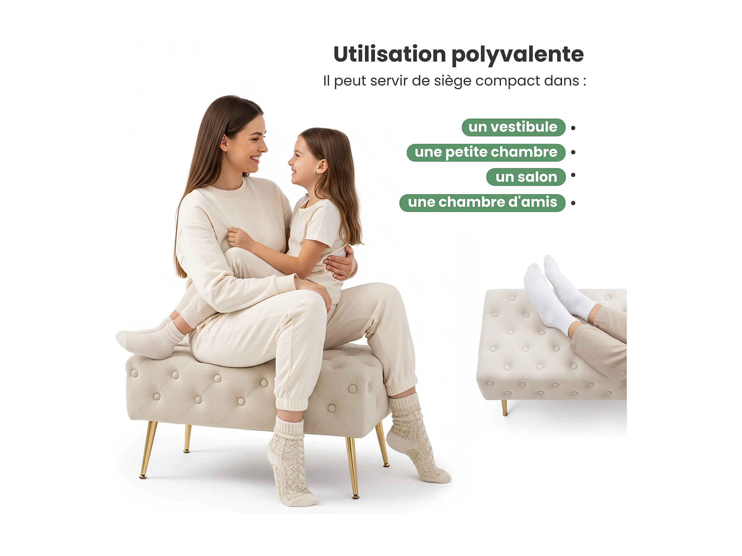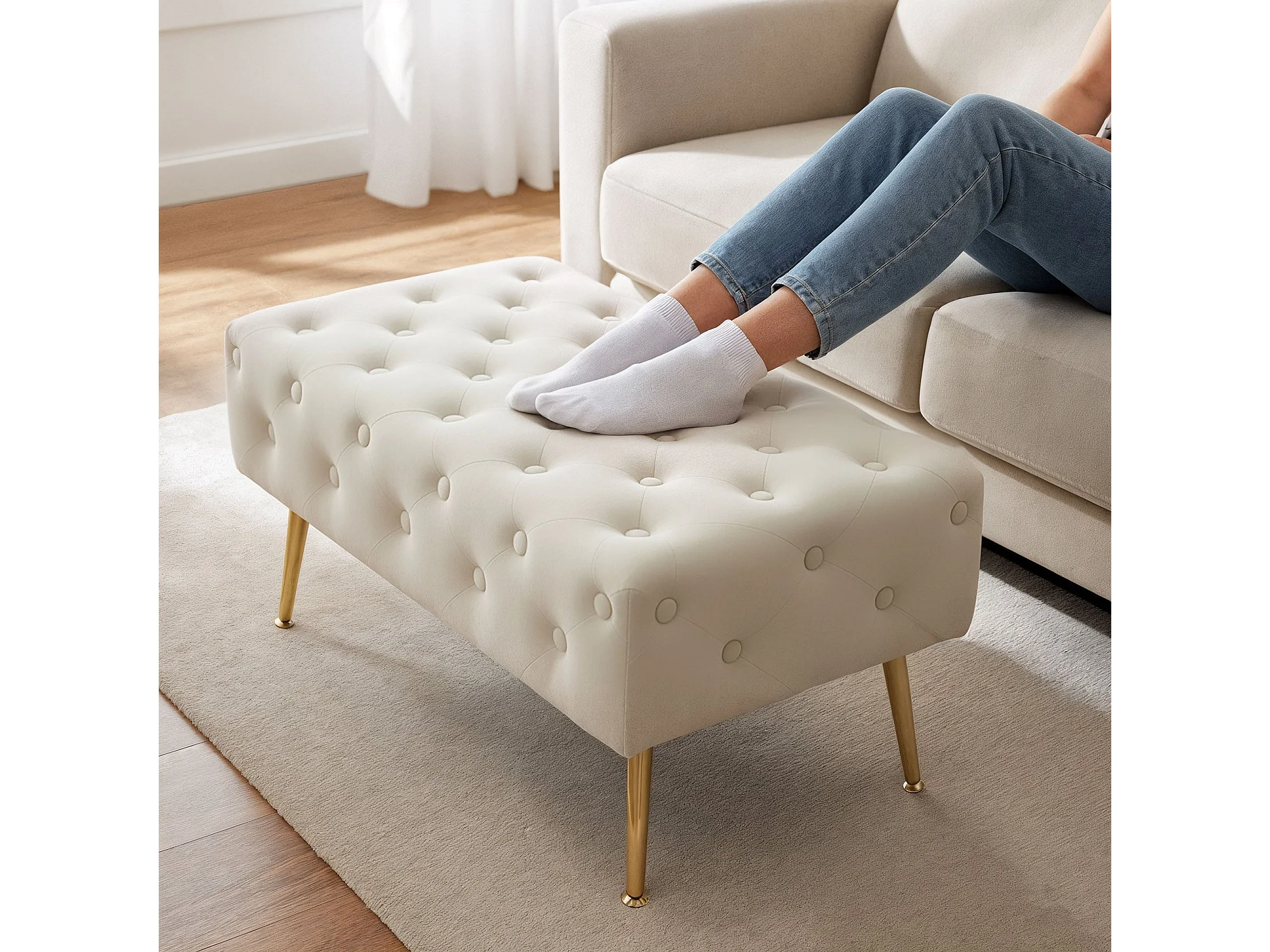 Bout de lit en velours capitonné 80 cm MADRID Beige