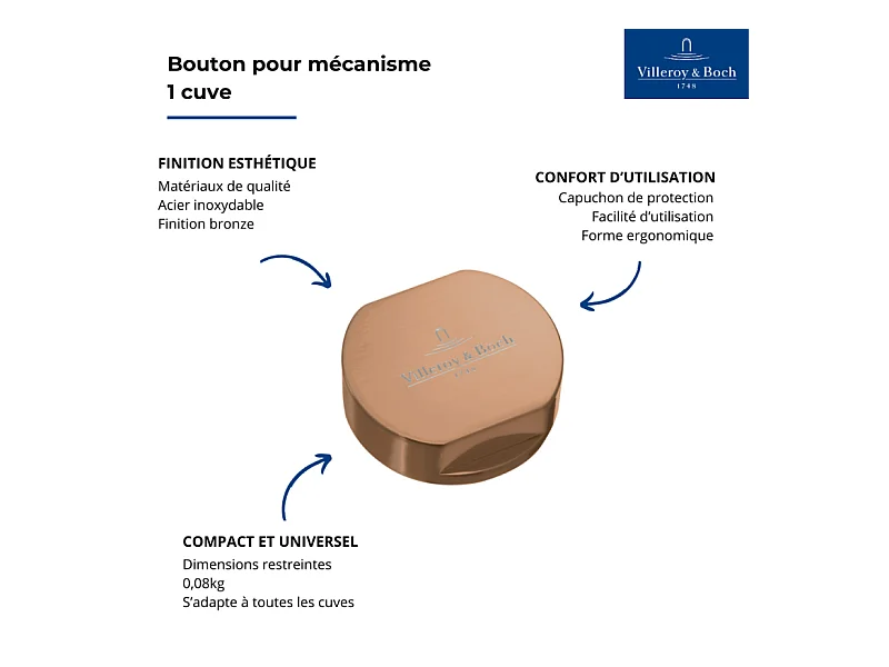 Bouton pour mécanisme 1 cuve, VILLEROY & BOCH en acier inoxydable finition bronze