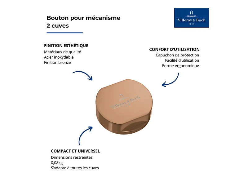 Bouton pour mécanisme 2 cuves, VILLEROY & BOCH en acier inoxydable finition bronze