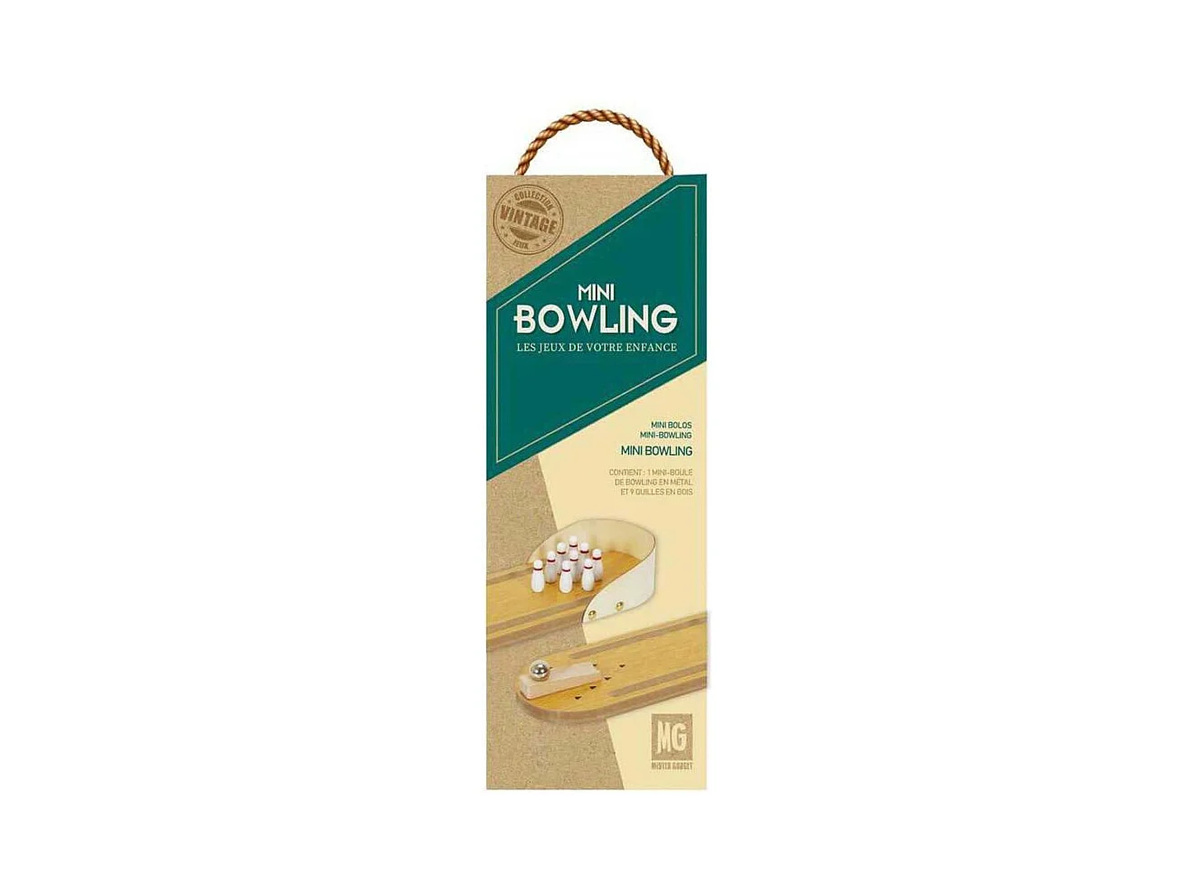 Jeu de quilles (10 pièces + 2 boules) dans une boîte en bois marron 25,5x7x5h