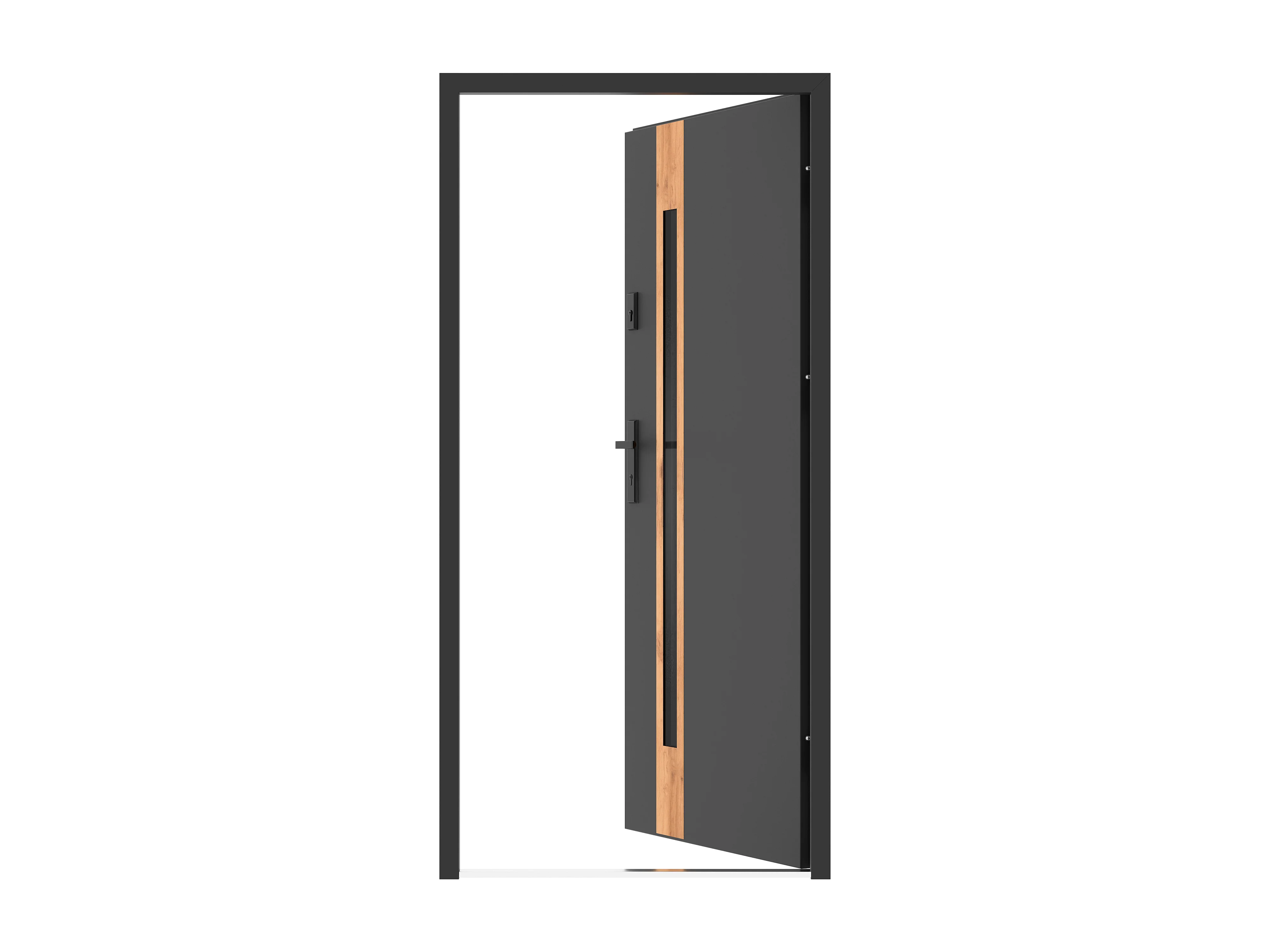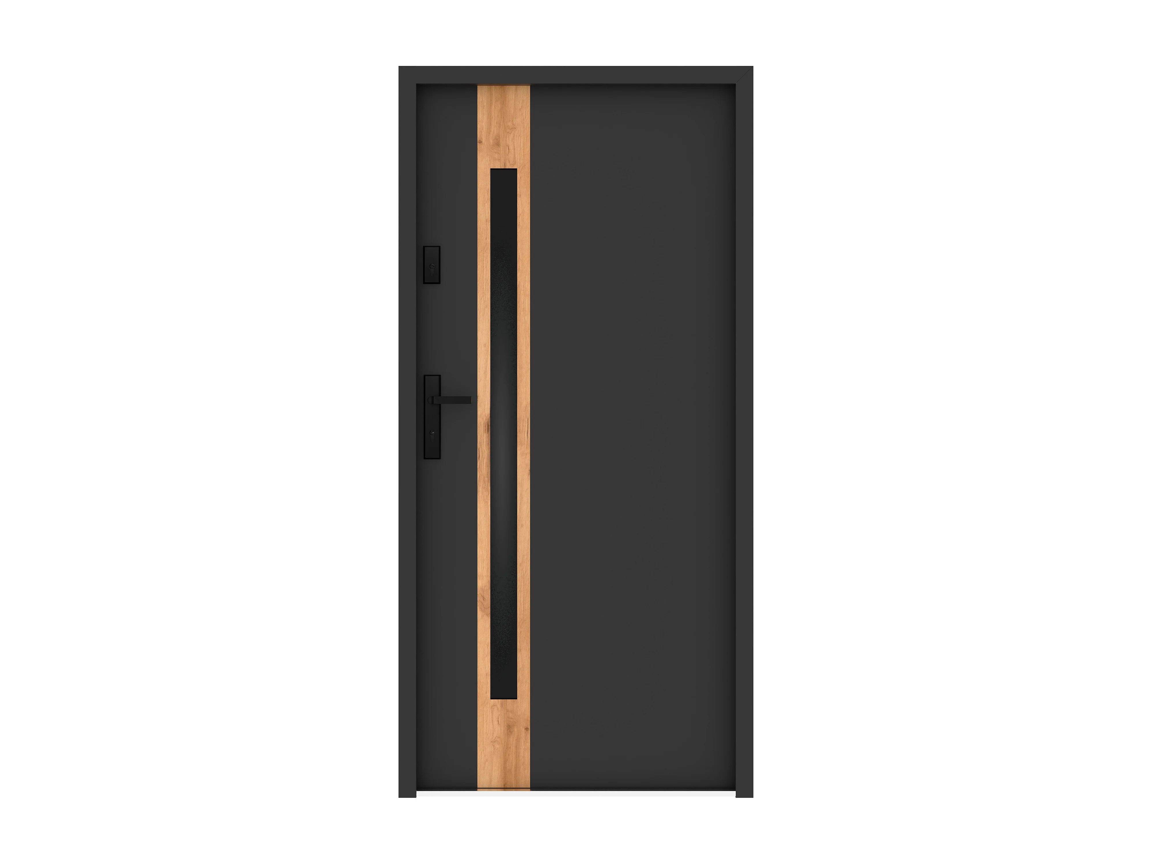 Porte d'entrée en acier pleine et inox H207 x L100 cm - verre fumé - anthracite et effet chêne - épaisseur 55 mm - poussant droit - BRAGA