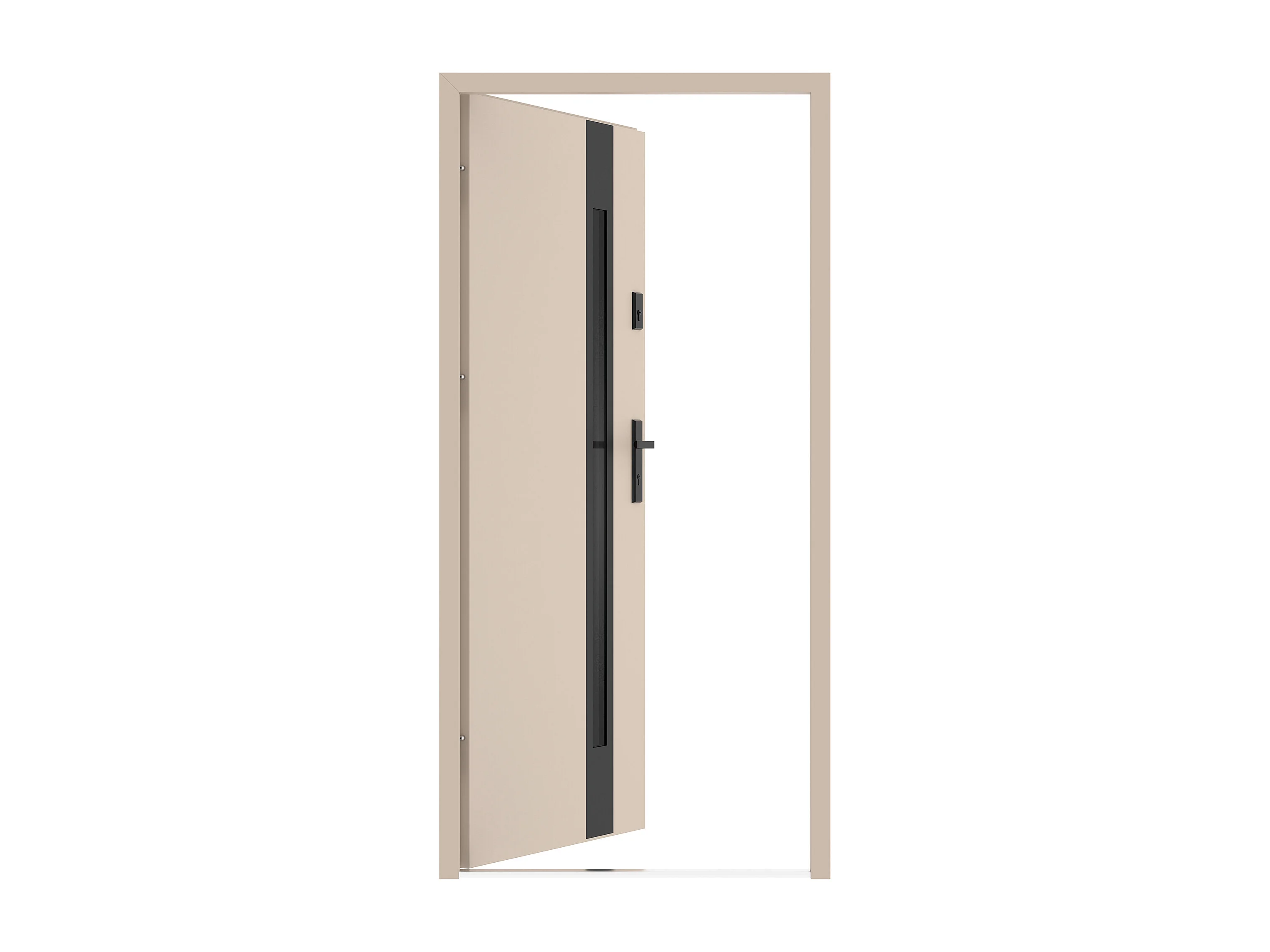Porte d'entrée en acier pleine et inox H207 x L100 cm - verre fumé - beige et noir - épaisseur 55 mm - poussant gauche - BRAGA