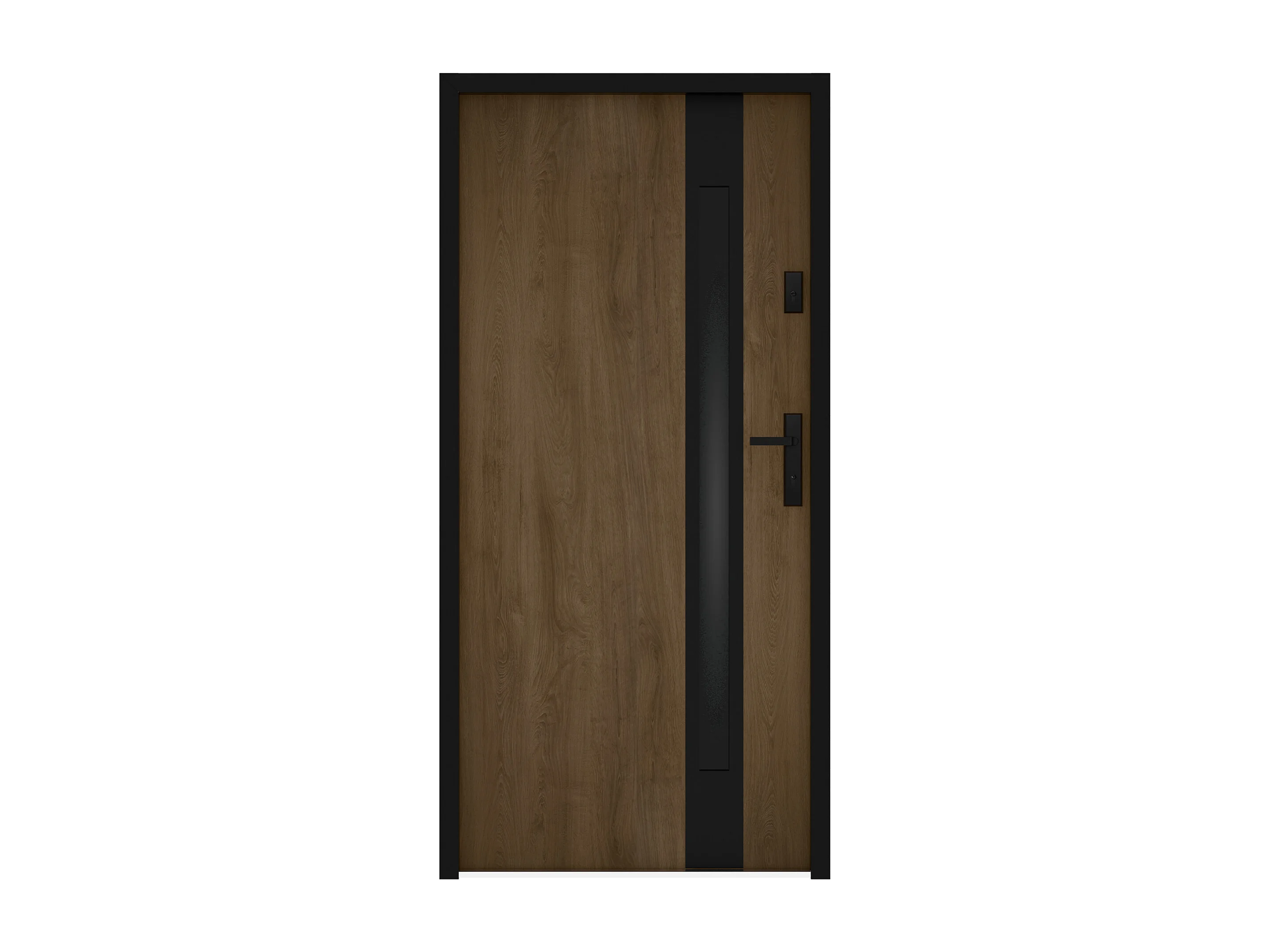 Porte d'entrée en acier pleine et inox H207 x L100 cm - verre fumé - effet noyer et noir - épaisseur 55 mm - poussant gauche - BRAGA