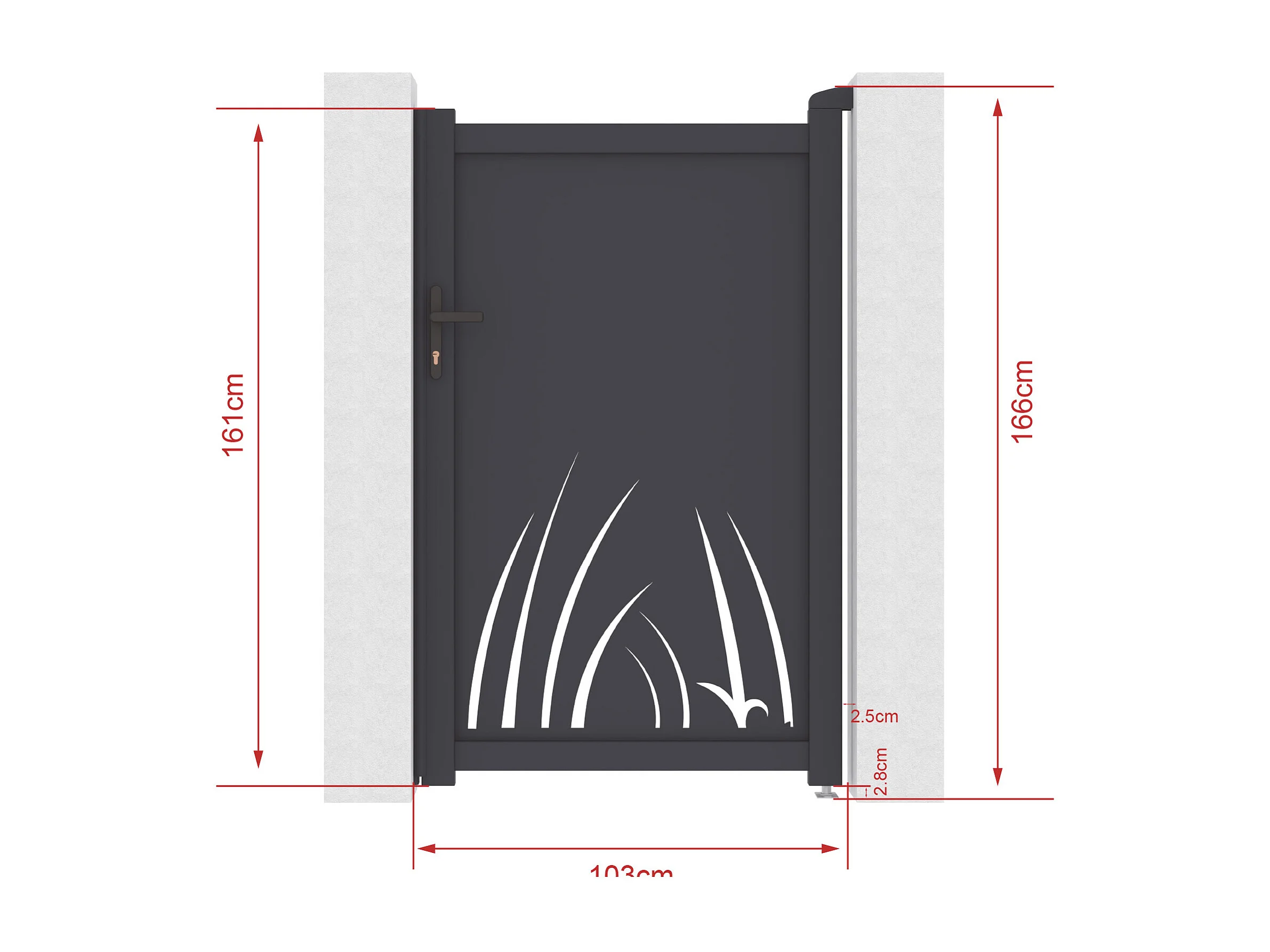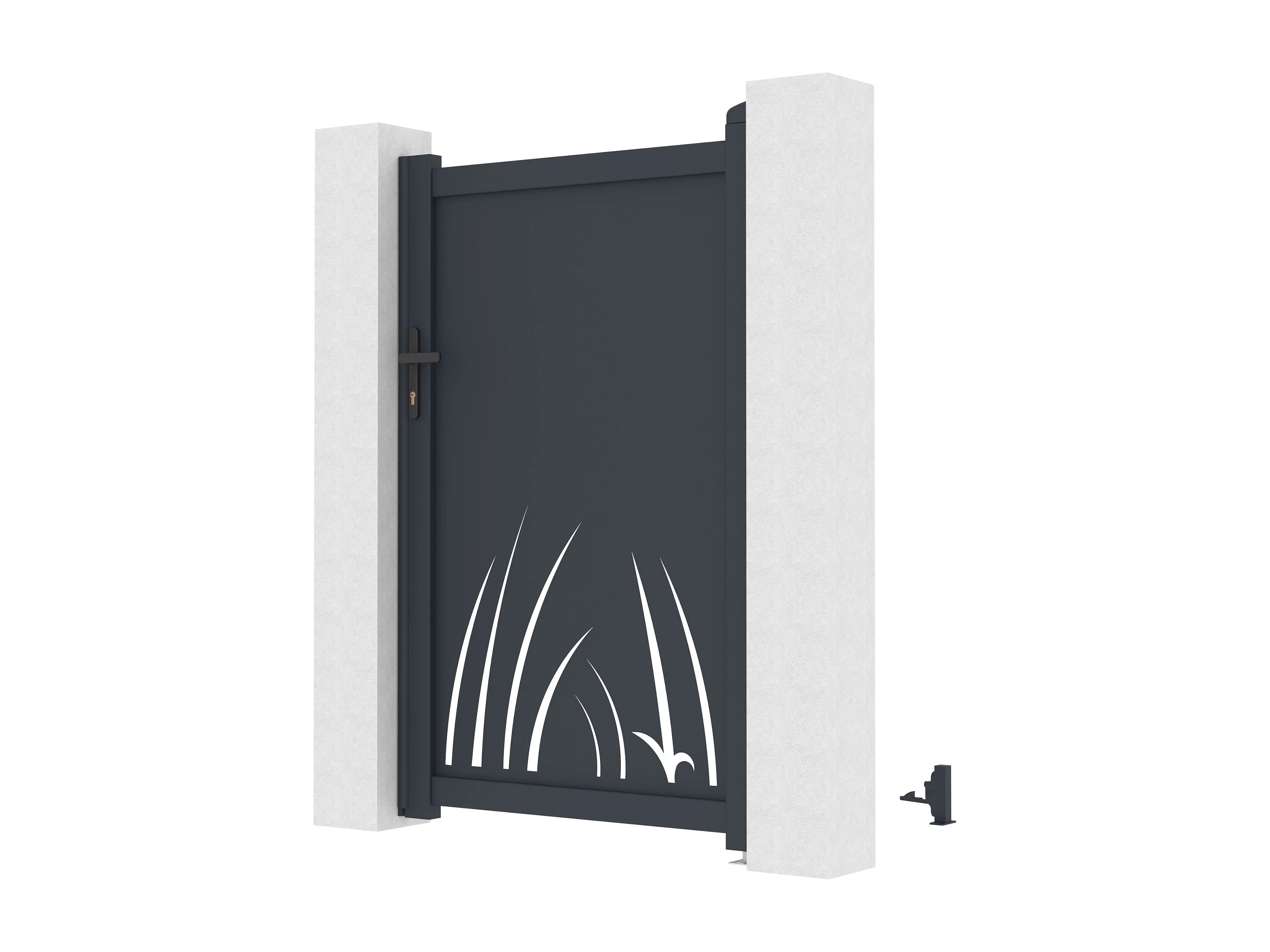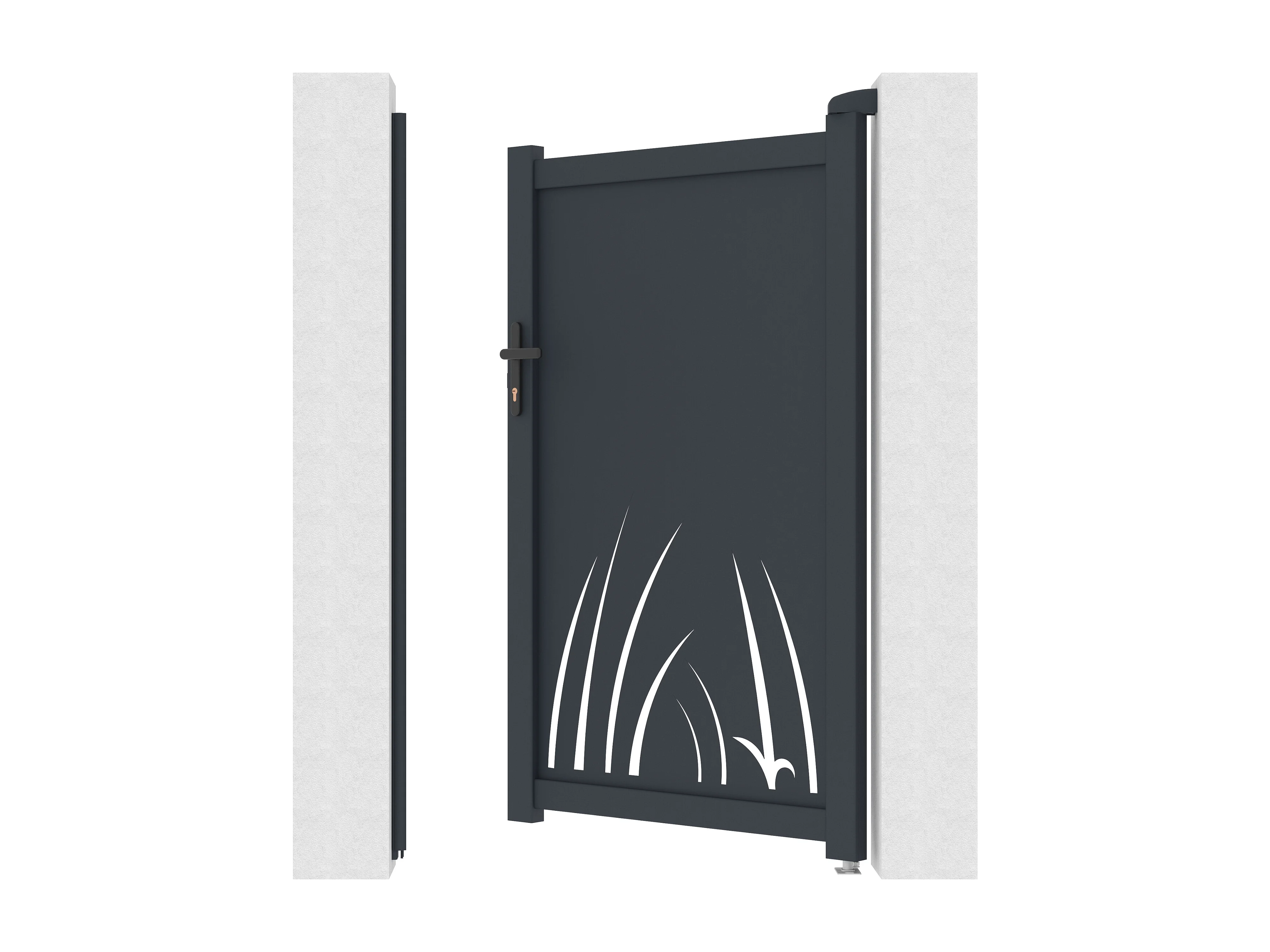 Portillon battant en aluminium à motif végétal en découpe laser - L103 x H166 cm - Anthracite - BRAMENO