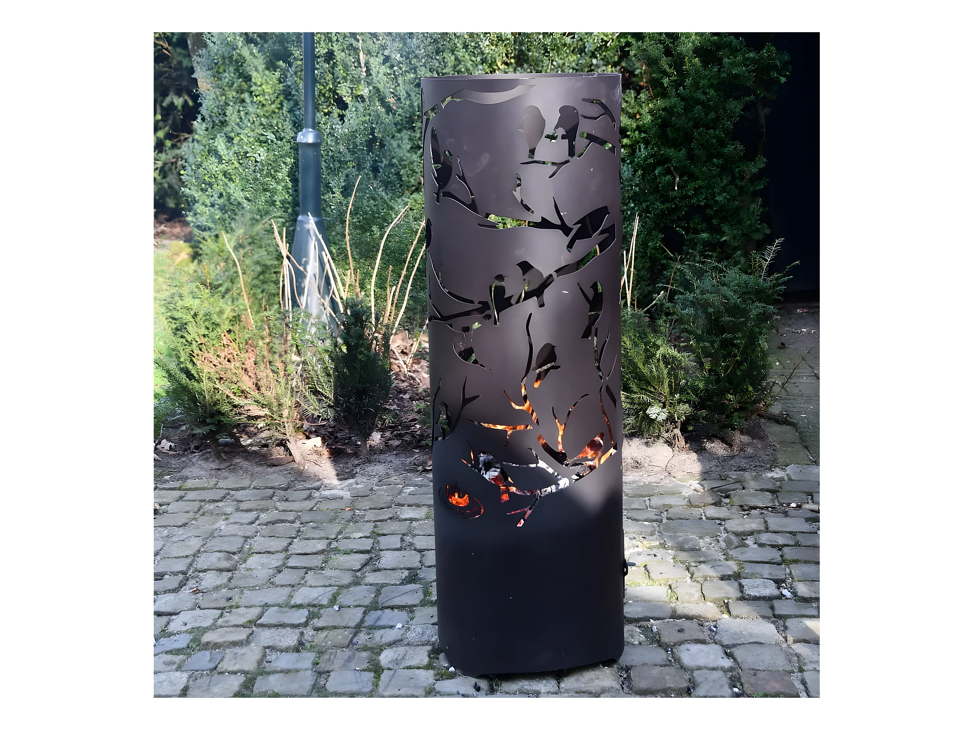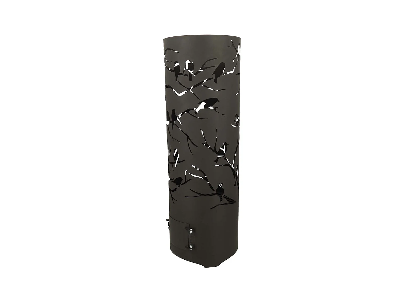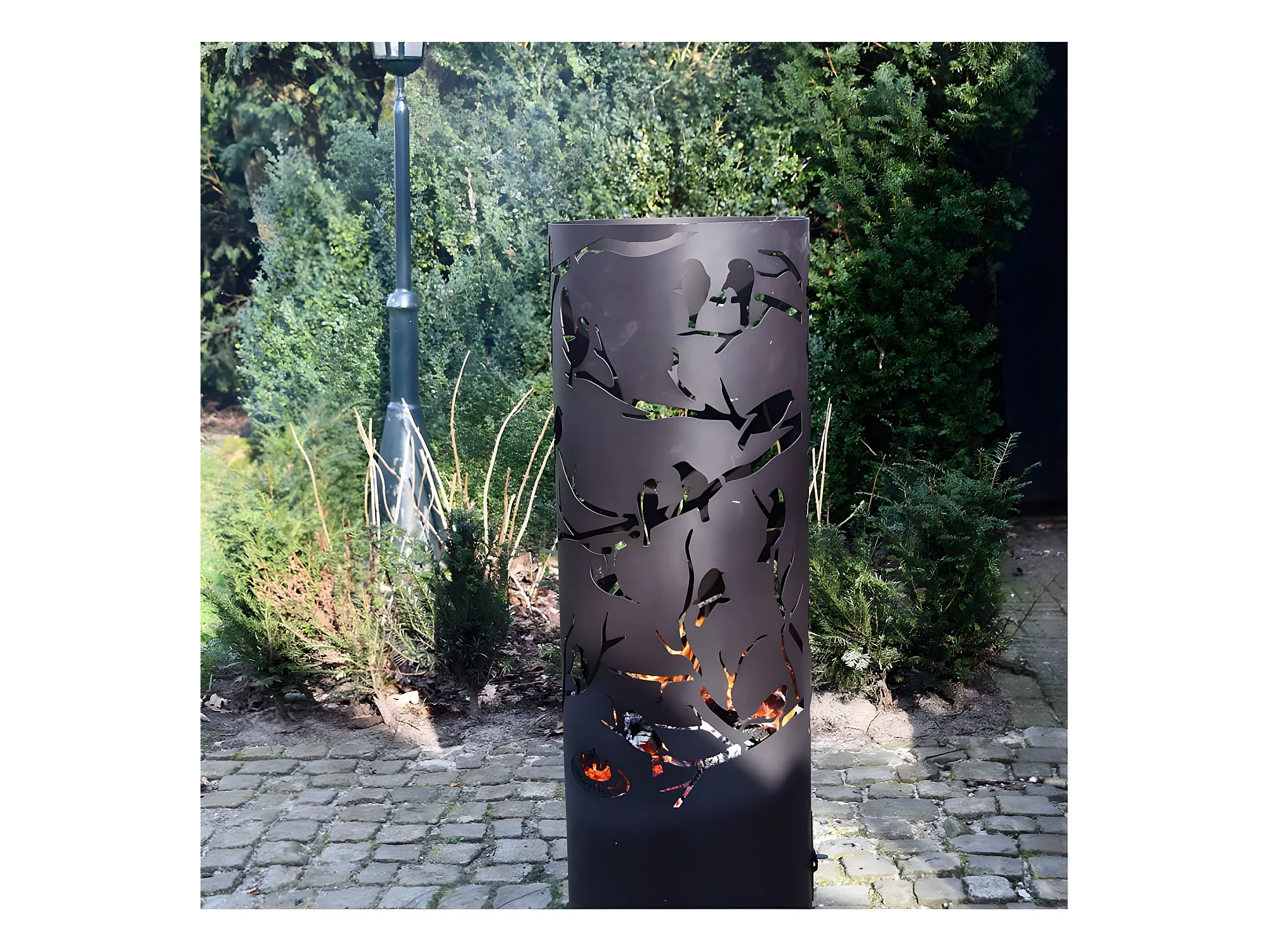 Brasero cylindre découpe laser 39 x 117 cm Découpe oiseaux