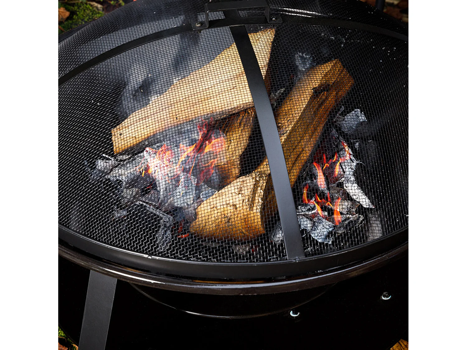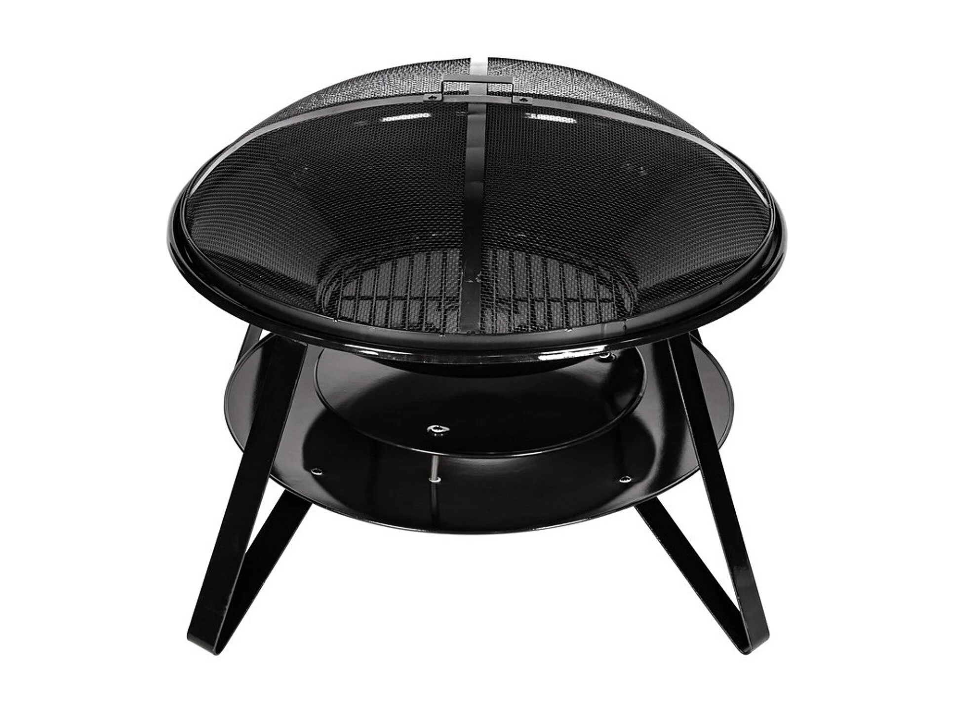 Brasero boule de feu cheminée foyer extérieur Ø 75 x 55H cm grille à charbon + cuisson couvercle tisonnier métal noir