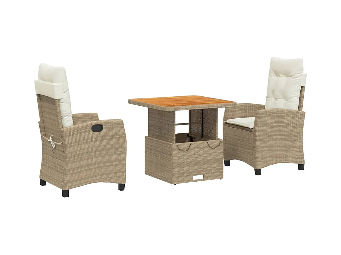 Brazil Ensemble à manger de jardin et coussins 3 pcs Beige poly rotin