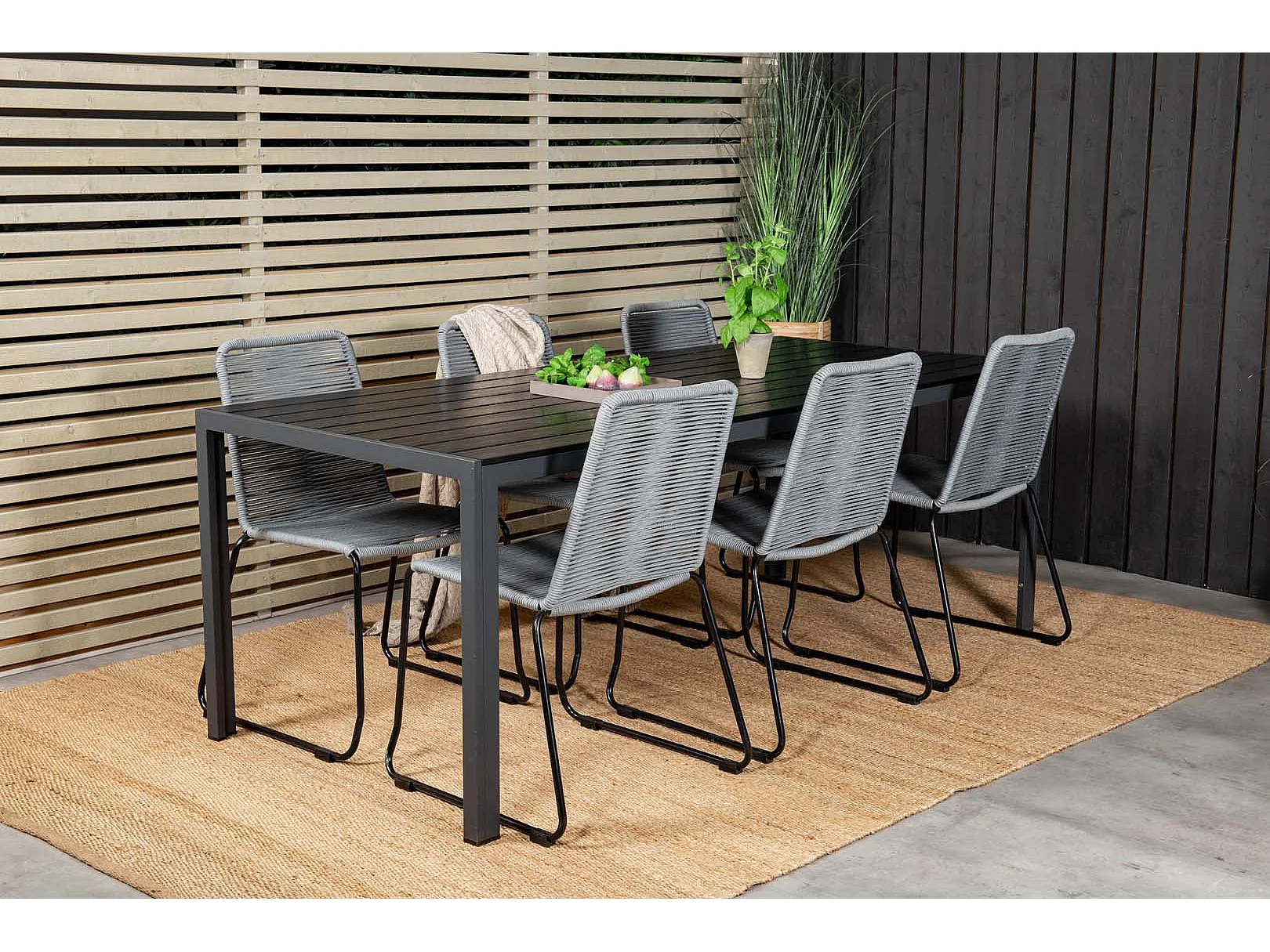Break set de jardin table 90x205cm noir, 6 chaises Lindos gris.