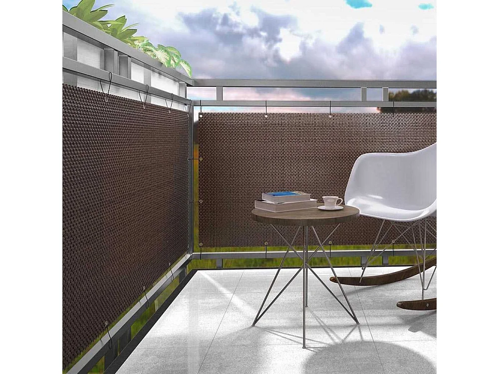 Brise-vue en résine tressée avec oeillets métalliques coloris gris clair 0.9 x 3 m