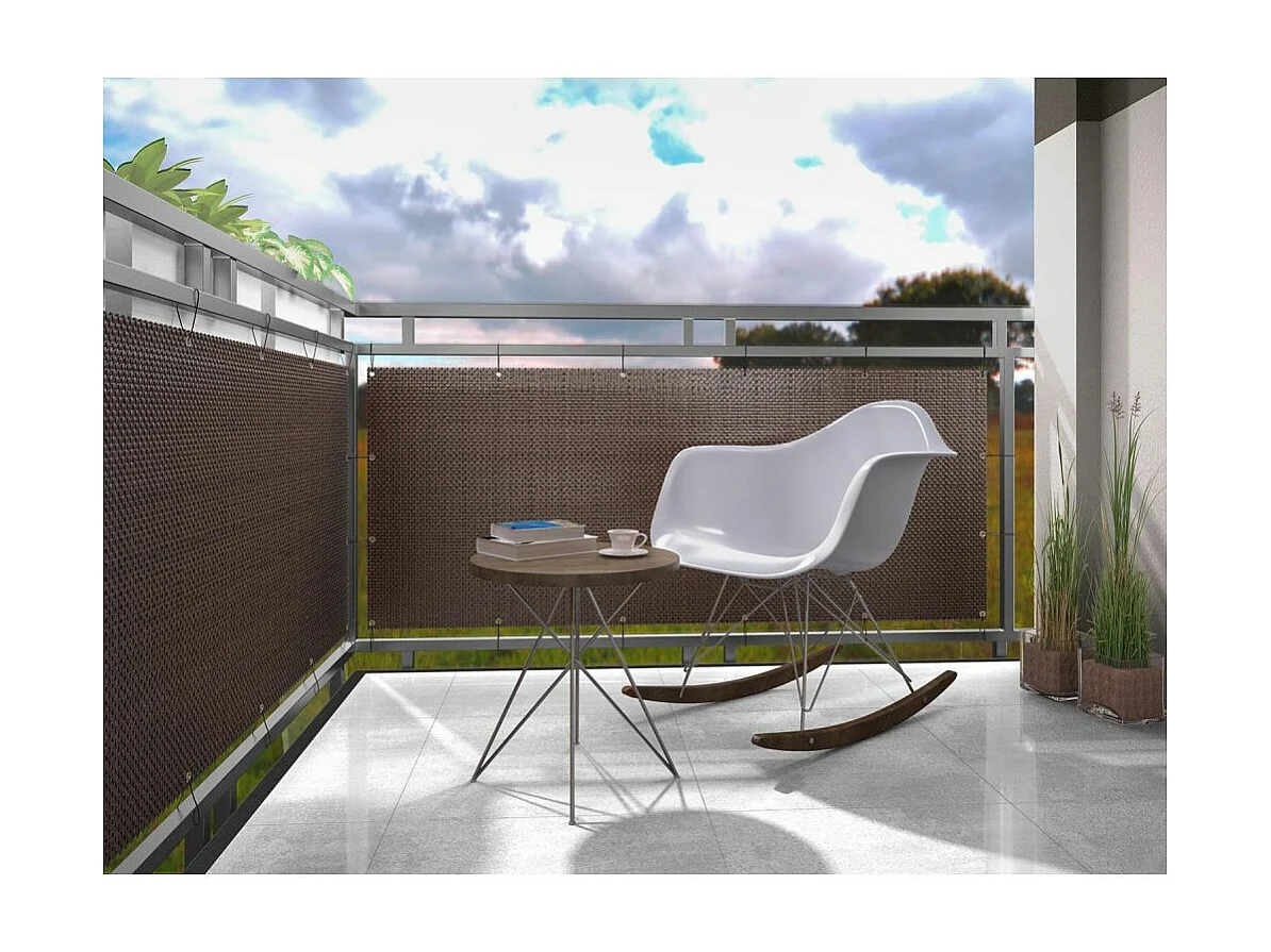 Brise-vue en résine tressée avec oeillets métalliques coloris marron 1 x 5 m