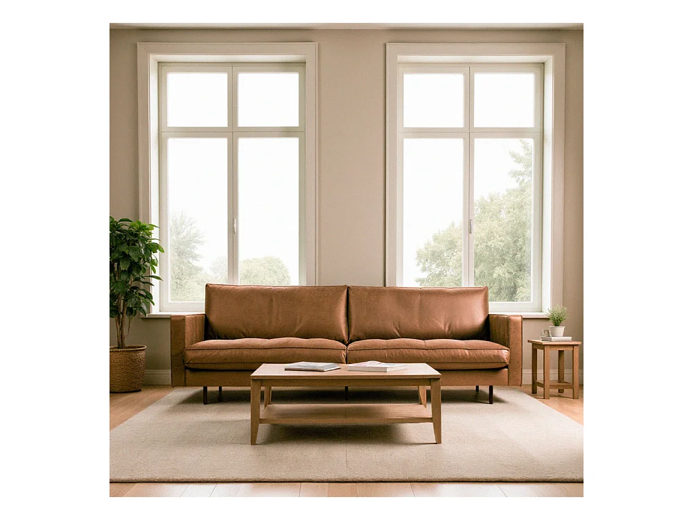 RODEO - Canapé vintage 3 places en cuir recyclé marron