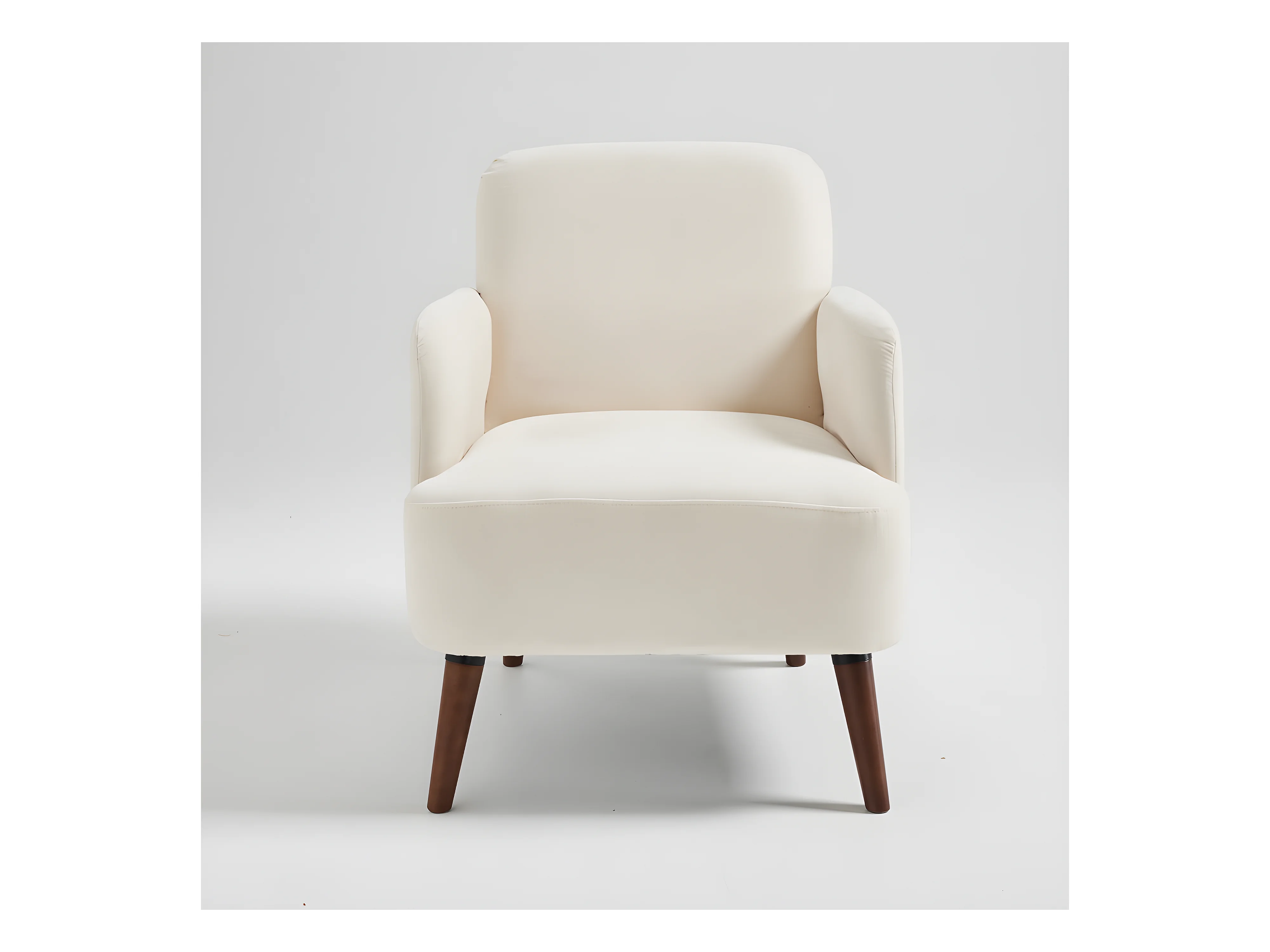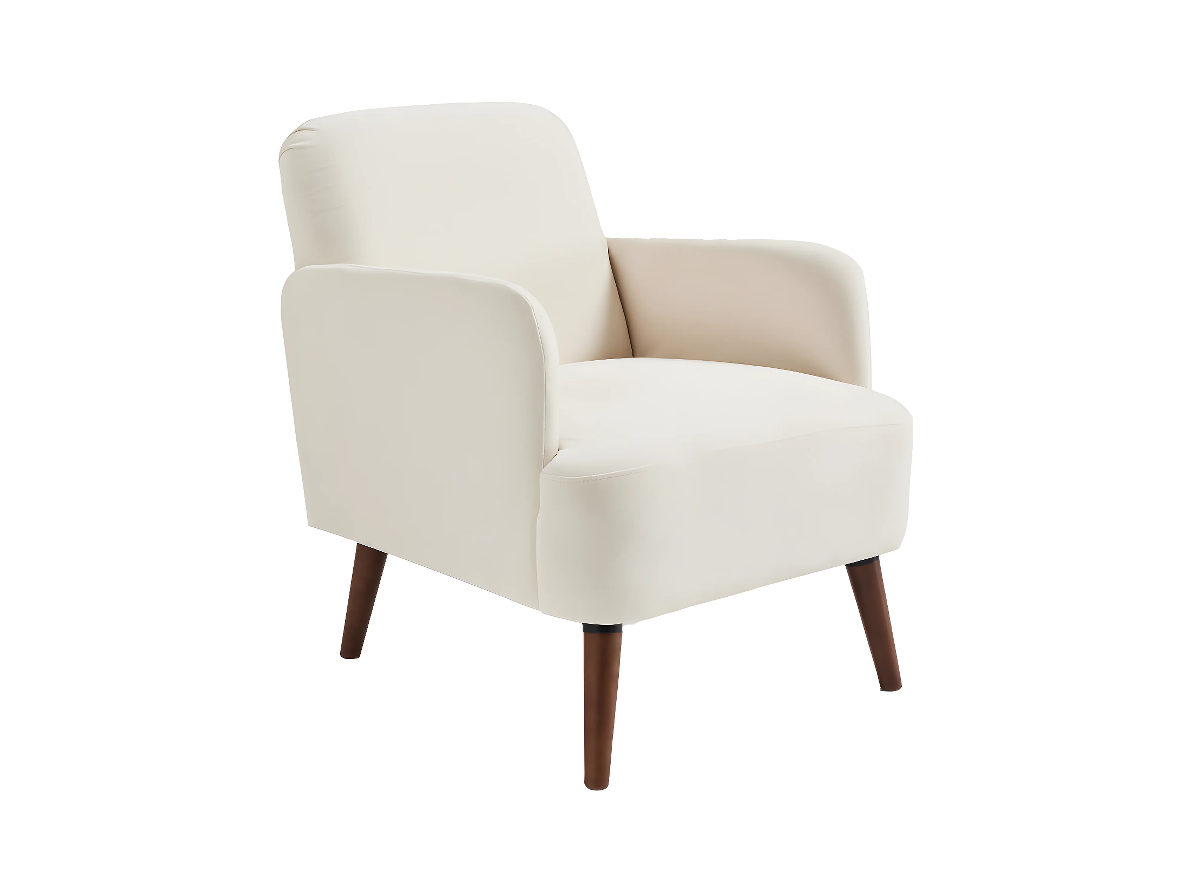 Brooks - Fauteuil rétro en tissu chenille pieds bois foncé - Écru