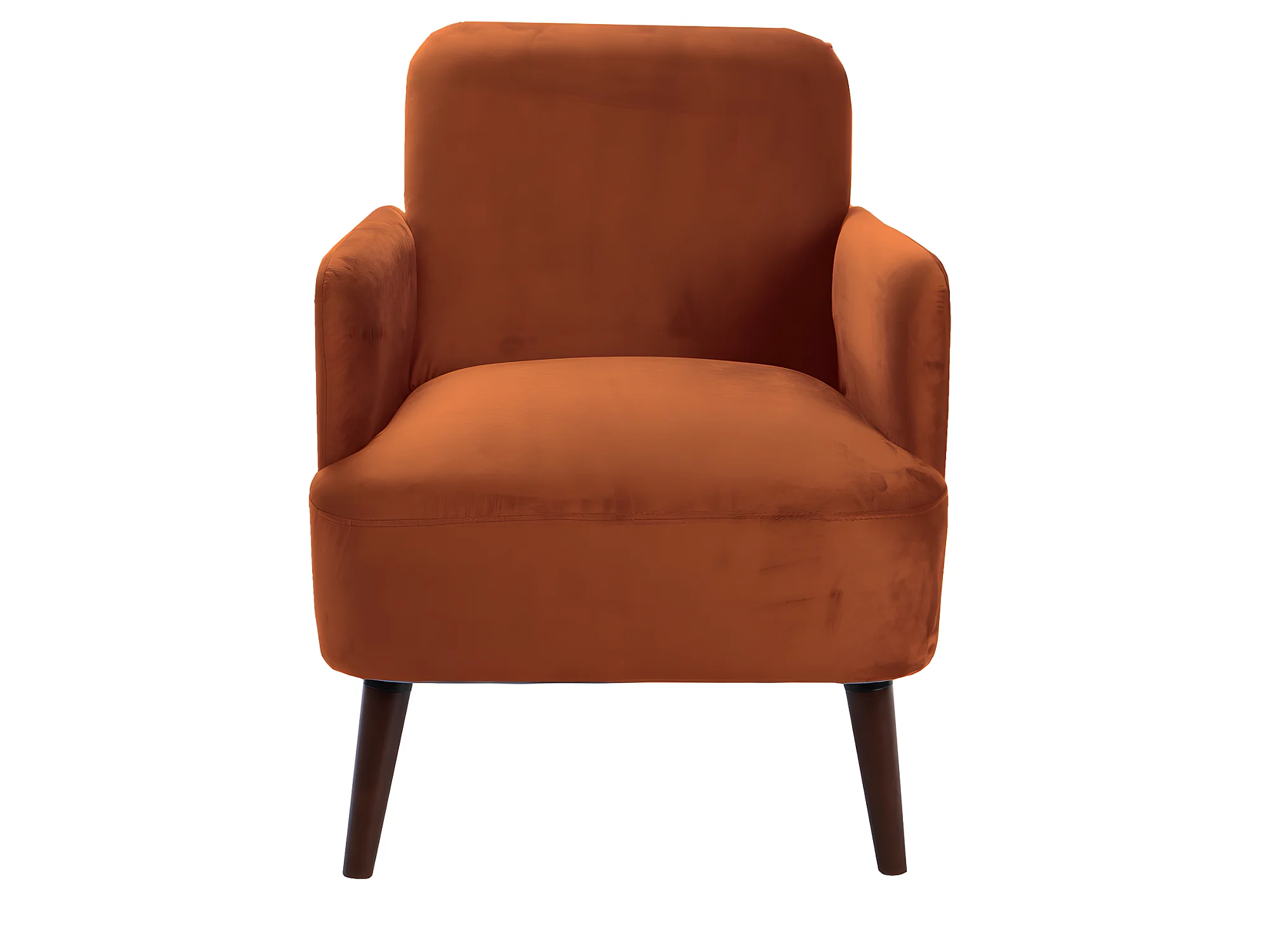 Brooks - Fauteuil rétro en velours pieds bois foncé - Rouille