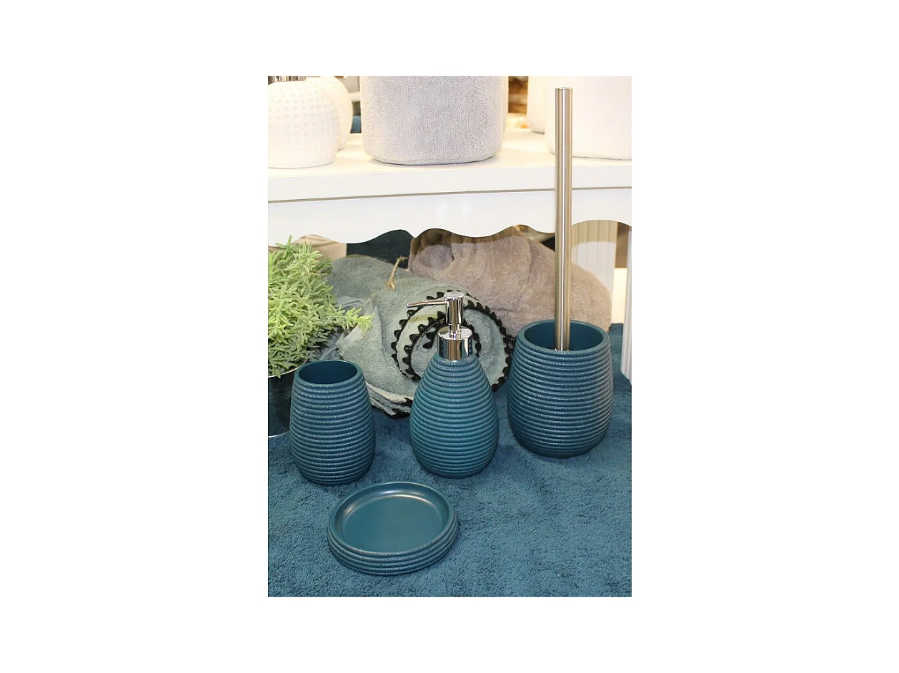 Brosse WC avec support en résine Bleu pétrole
